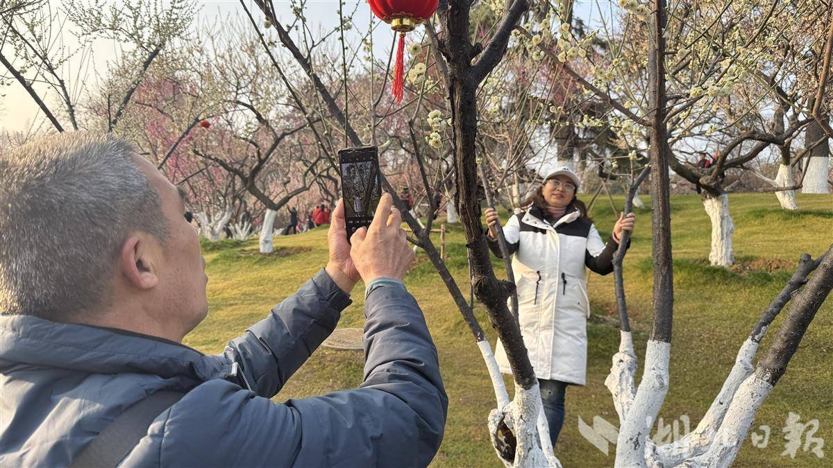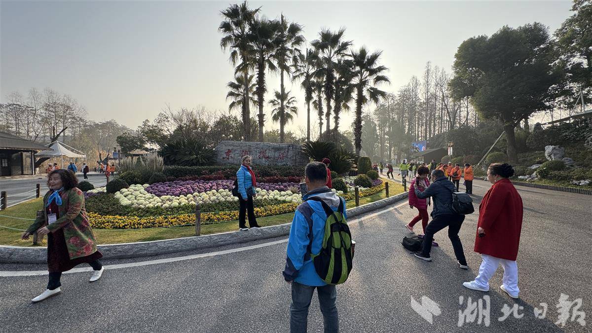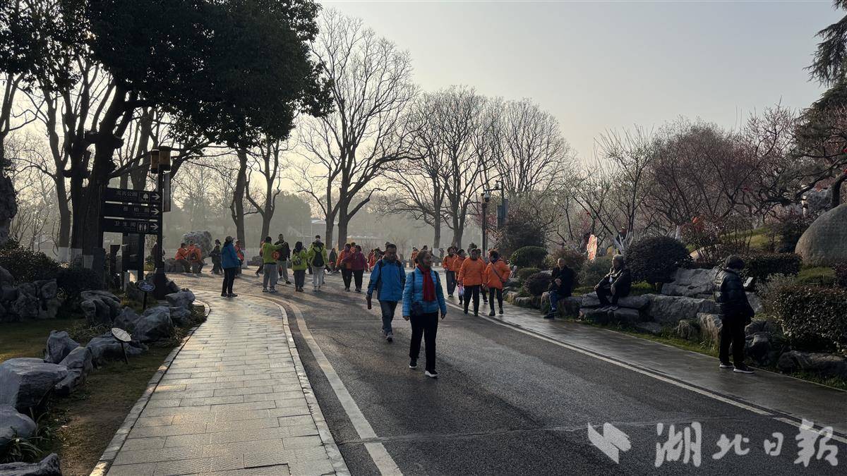 当日7时许,20台旅游大巴来到武汉东湖听涛风景区赏梅。走进景区,游客纷纷被东湖里的美景吸引,刚刚升起的朝阳,把湖面照射得金光灿灿,“太美了!没想到来武汉第一站就看到这么好的美景。”今年72岁的游客李希荣说。忙着在梅花丛中拍照的游客张定秀不停换着POSE,“这次我跟17个好朋友一起报名参加旅行,一路上大家有说有笑,玩得很开心。”