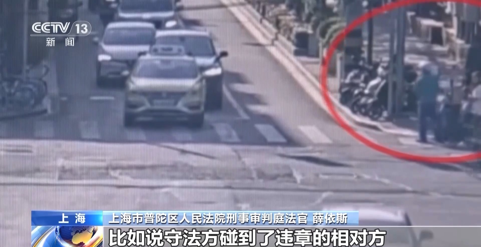 上海市普陀区人民法院刑事审判庭法官 薛依斯:谁更守法,责任肯定会更低一点,尤其是完全守法的,比如说守法方碰到了违章的相对方,哪怕是违法的相对方受到了伤害,守法的那一方最起码是不会构成刑事责任的。