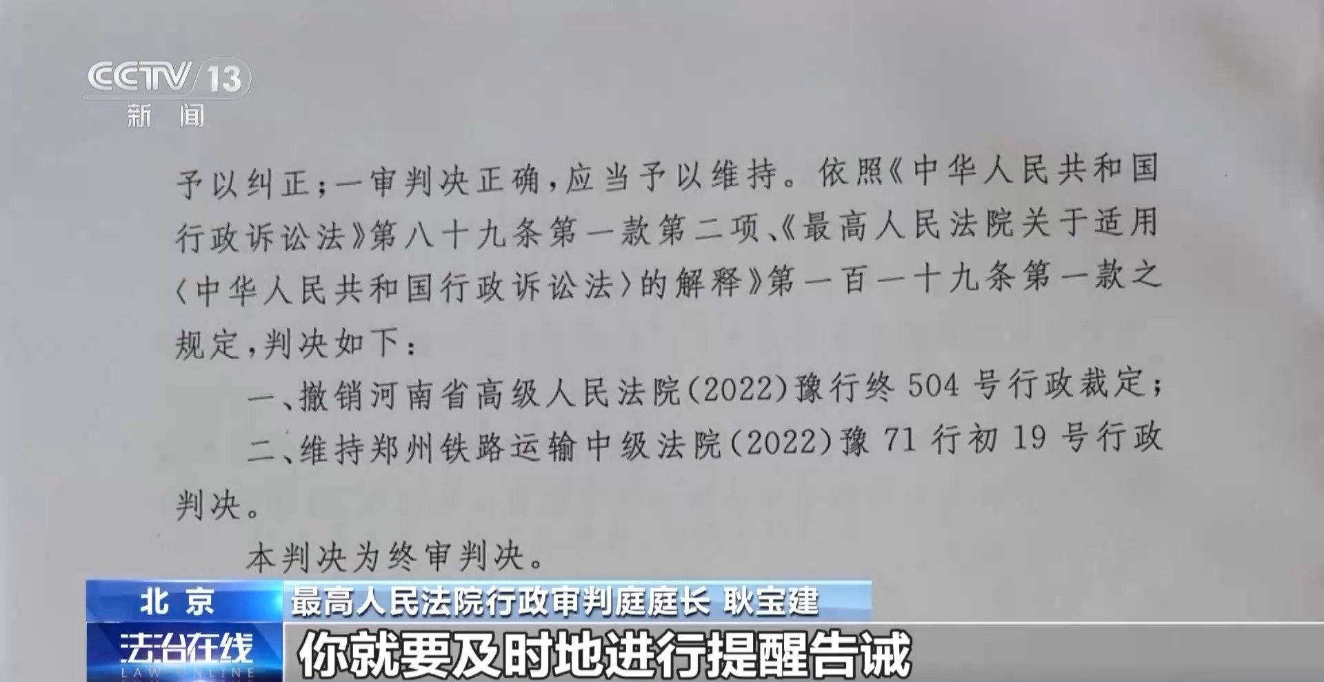最高人民法院行政审判庭庭长 耿宝建:从个案当中发现暴露的问题之后,最高人民法院提审改判之后,我们又把它进一步升华,通过一个司法解释的方式来解决面上的一类的问题。