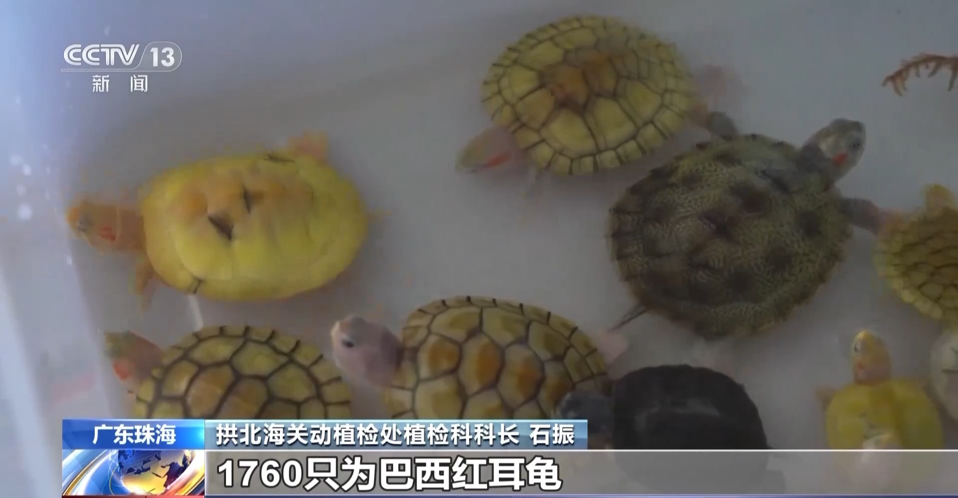 拱北海关动植检处植检科科长 石振:经专业机构鉴定,该案活体龟类中,1760只为巴西红耳龟,是世界公认的生态杀手,已被列入我国《重点管理外来入侵物种名录》。