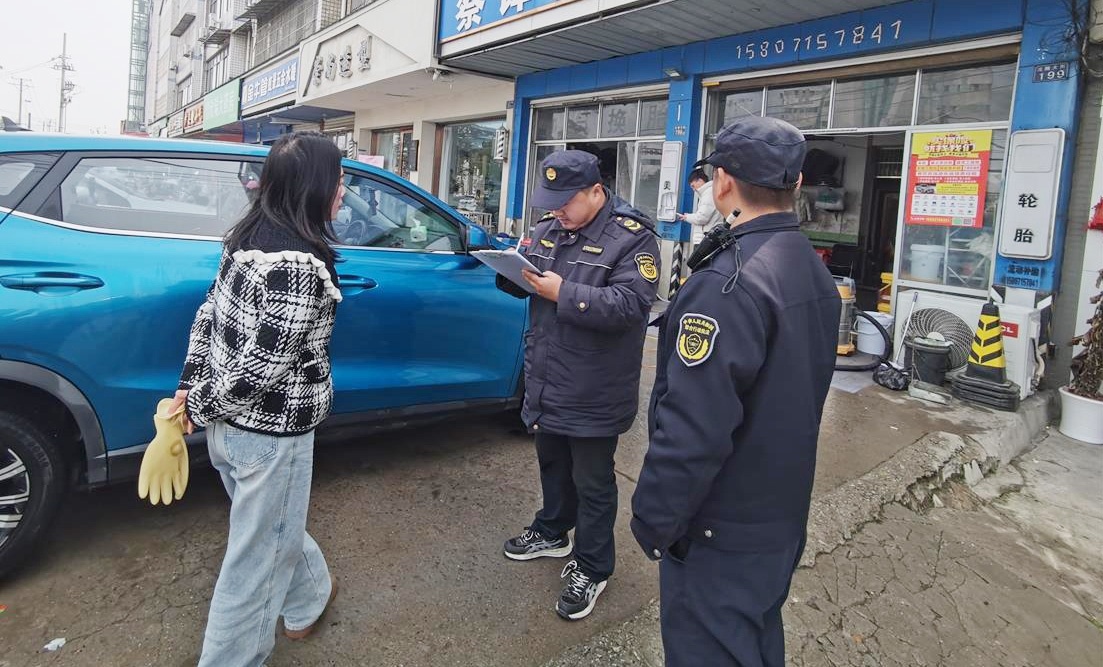 2月26日上午11时许,在新洲区龙腾大道一家洗车店外,一店员正在给一台轿车洗车,旁边还停放着一辆已经洗好的车辆。污水顺着坡度,流向4米开外的非机动车道。“你们占道洗车,违反了《武汉市市容环境卫生管理条例》的规定。”邾城街道综合执法中心执法队员巡查发现后,当即要求洗车店进行改正,并下达整改通知。