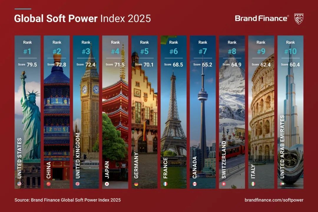 正如“品牌金融”咨询公司总裁大卫·海格所说:“中国对软实力的投资正在显现成效,2025年中国软实力排名首次超过英国,反映出中国在不断加强经济吸引力、展示自身文化特色等方面的成果。”