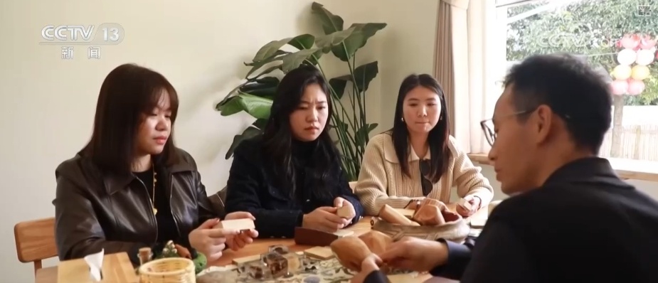 胡进雄是郴州的美术工艺大师,听说塔水村在盘活闲置的老屋,对外招聘艺术小院“主理人”,他把工作室搬了过来,每周都拿出三四天时间来小院里搞创作,并给前来观赏的游客们讲解木雕技艺。