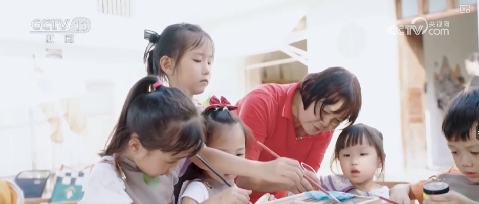 而在手绘墙的对面,是塔水村打造的艺术小院。村里11幢闲置的老屋,被改造成不同主题的艺术小院,书画、陶艺、剪纸、雕刻等等,一院一特色,吸引了不少游客前来体验。