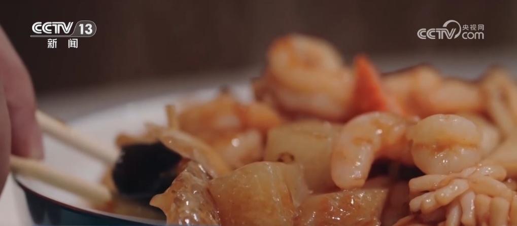 除了煎,焖子的做法也在不断创新。这道“八珍焖子”就把天津人靠海吃海的饮食特色彰显得淋漓尽致。用虾仁、鱿鱼、海参等海鲜做辅料,配以炸制的焖子,咬上一口,各种混合的味道弥漫在唇齿间,海鲜与绿豆焖子的碰撞绝对是“龙抬头”这天不可错过的美食。