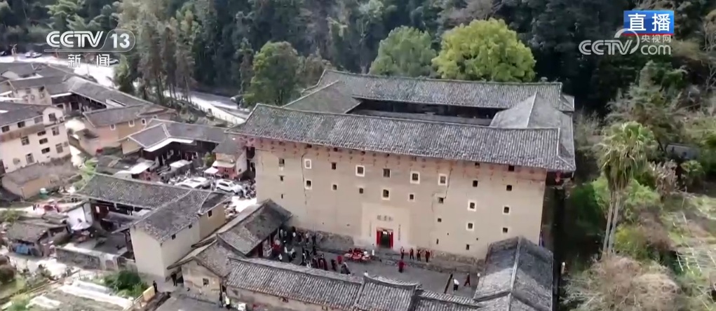 2008年,福建土楼被正式列入《世界遗产名录》。南靖县境内有各类土楼15000多座,土楼不光有圆的,还有方形的。通过航拍画面可以看到,和贵楼就是有着厝包楼、楼包厝结构非常特别的方形土楼。看记者身后,大家可以看到今天这里是非常热闹,舞龙者在龙珠的引导下,完成着龙的游、穿、腾、跃等一系列动作。一旁的舞狮则是在空中时而腾飞、时而俯冲,龙狮共舞,特别喜庆。3月1日是农历二月二,民间称为“龙抬头”,这一天也有着有“春耕节”的别称。随着天气逐渐转暖,农民告别农闲,开始下地劳作了。在这一天舞龙舞狮,也是一种辞旧迎新,用这种方式祈福万物生长,风调雨顺。从广场上往和贵楼里面走,龙尾、狮尾扫过我的身旁,很有仪式感。