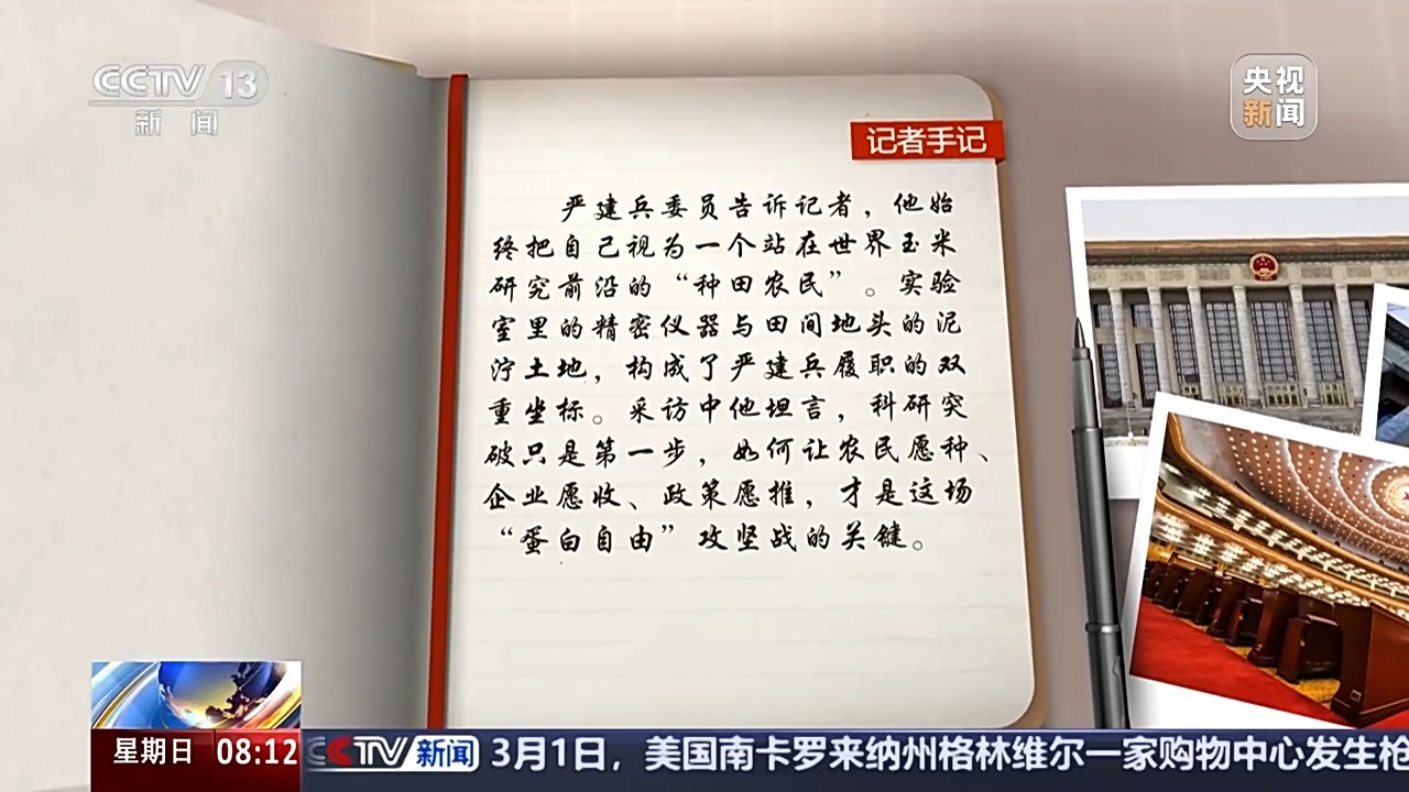 严建兵委员告诉记者,他始终把自己视为一个站在世界玉米研究前沿的“种田农民”。实验室里的精密仪器与田间地头的泥泞土地,构成了严建兵履职的双重坐标。采访中他坦言,科研突破只是第一步,如何让农民愿种、企业愿收、政策愿推,才是这场“蛋白自由”攻坚战的关键。