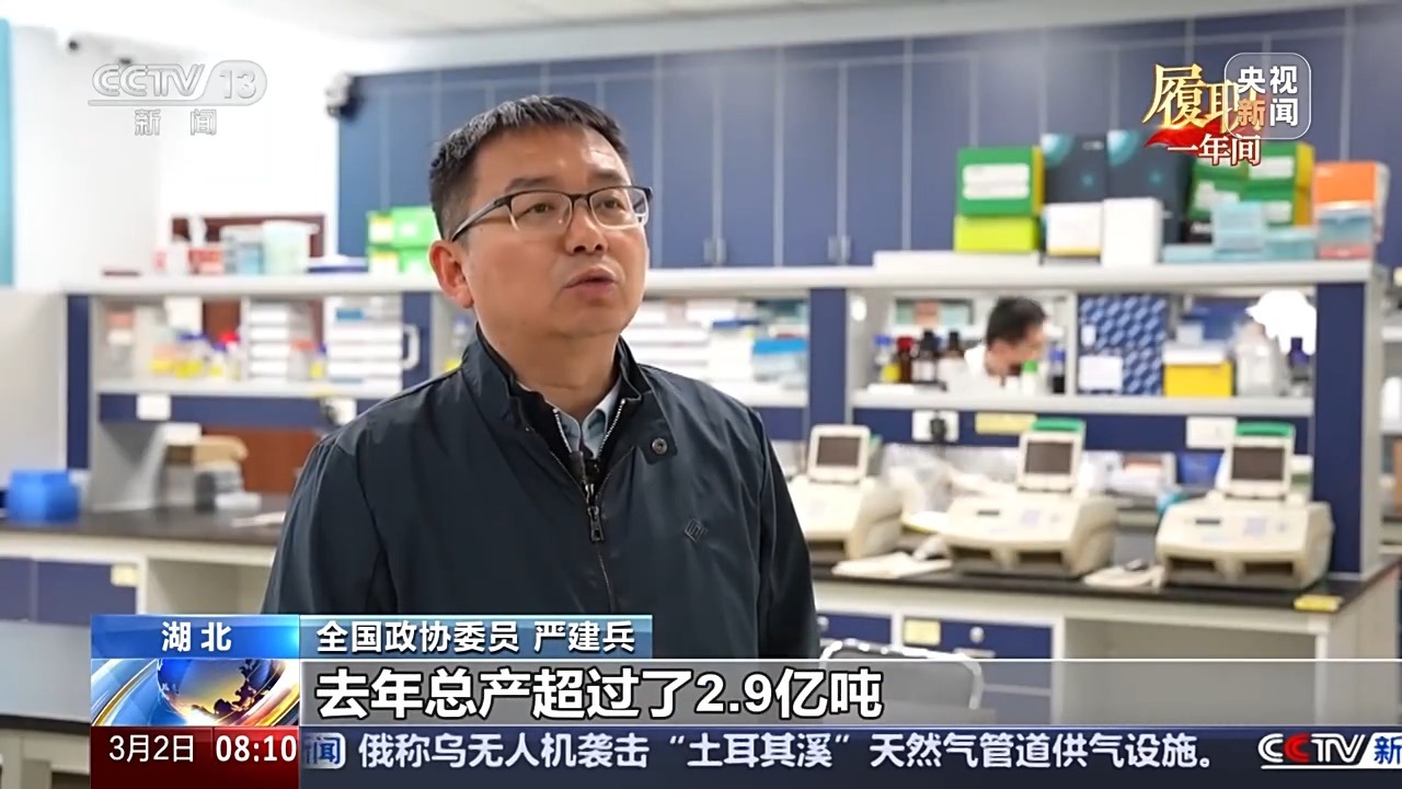 全国政协委员 严建兵:我们三分之一的耕地种的都是玉米,去年总产超过了2.9亿吨。玉米蛋白含量每提高一个百分点,就相当于每年能够多提供290万吨的蛋白,是800万吨大豆的蛋白产量。