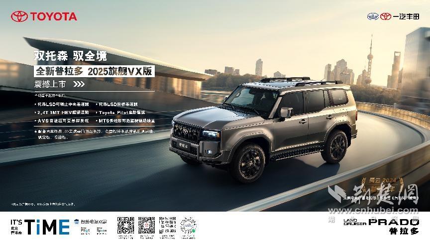 第二硬核,超级混动。全新普拉多搭载的2.4T超级混动系统,匹配Direct Shift-8AT变速箱,是一套兼顾越野性能、全域加速、环保性能、可靠的动力组合,兼容了极限越野和都市驾驶。其最大功率243kW,综合最大扭矩630N·m,WLTC工况下百公里油耗为10.11L。尤为重要的是,其可靠性强,极寒气候仍可正常工作,即便电机故障也能靠发动机正常行驶。该动力系统还获得了“中国心”2024年度十佳发动机及混动系统荣誉。