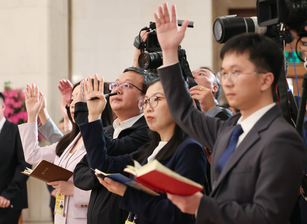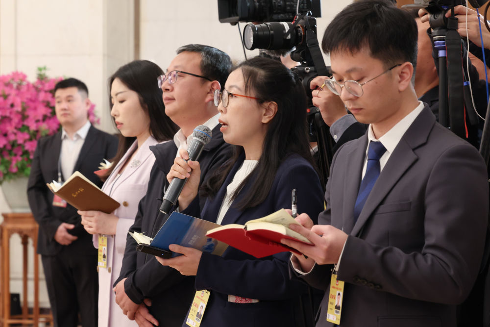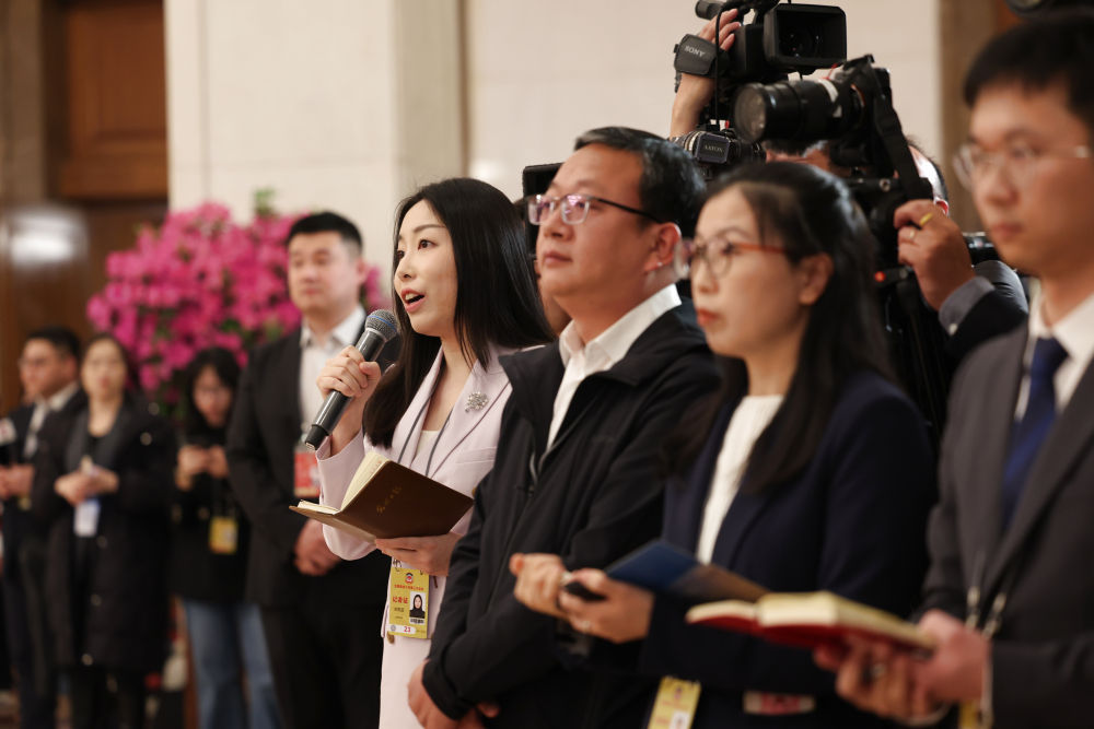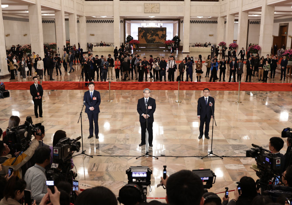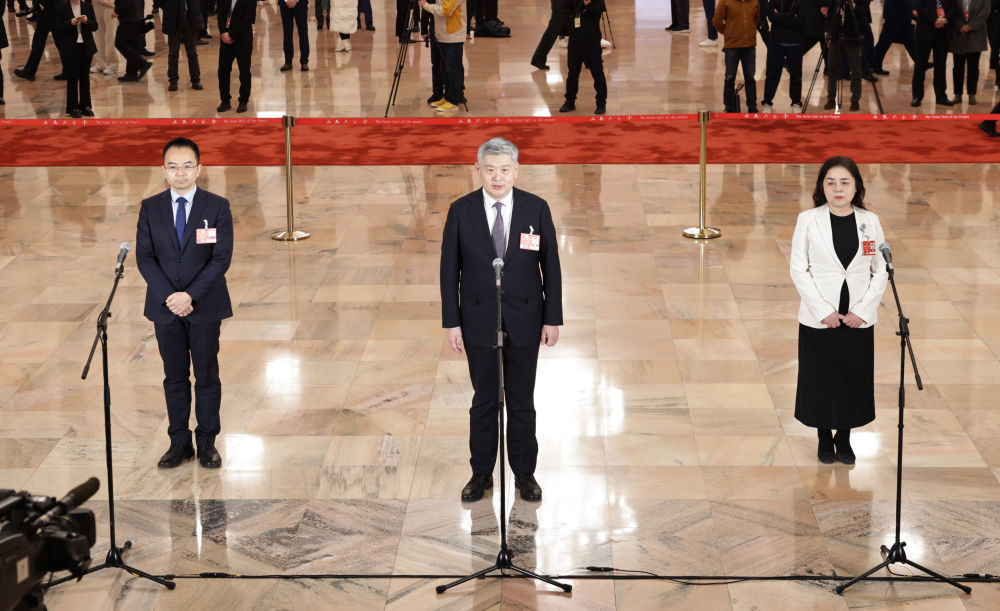 3月4日,全国政协十四届三次会议首场“委员通道”集体采访活动在北京人民大会堂举行。