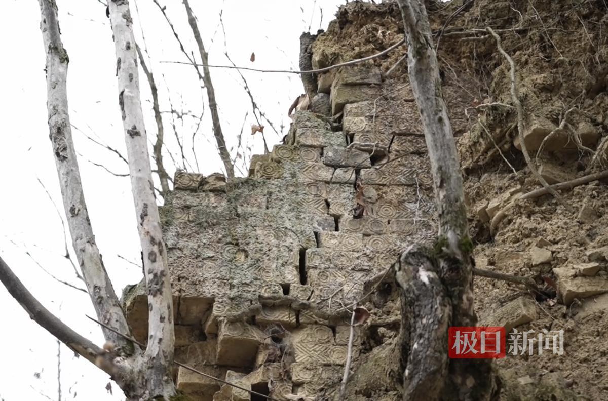 根据热心群众提供的线索,长阳博物馆工作人员立即对磨市镇花桥村官家冲一处疑似古墓葬区域展开实地调查。只见在一处地势起伏较大的山坡断崖面上,暴露出一座残损券顶,沙石斜面上散落有几块特殊花纹的墓砖。不远处,另一座残损券顶或因地质变化或受自然侵蚀,裸露于林木之下,场面颇为震撼。