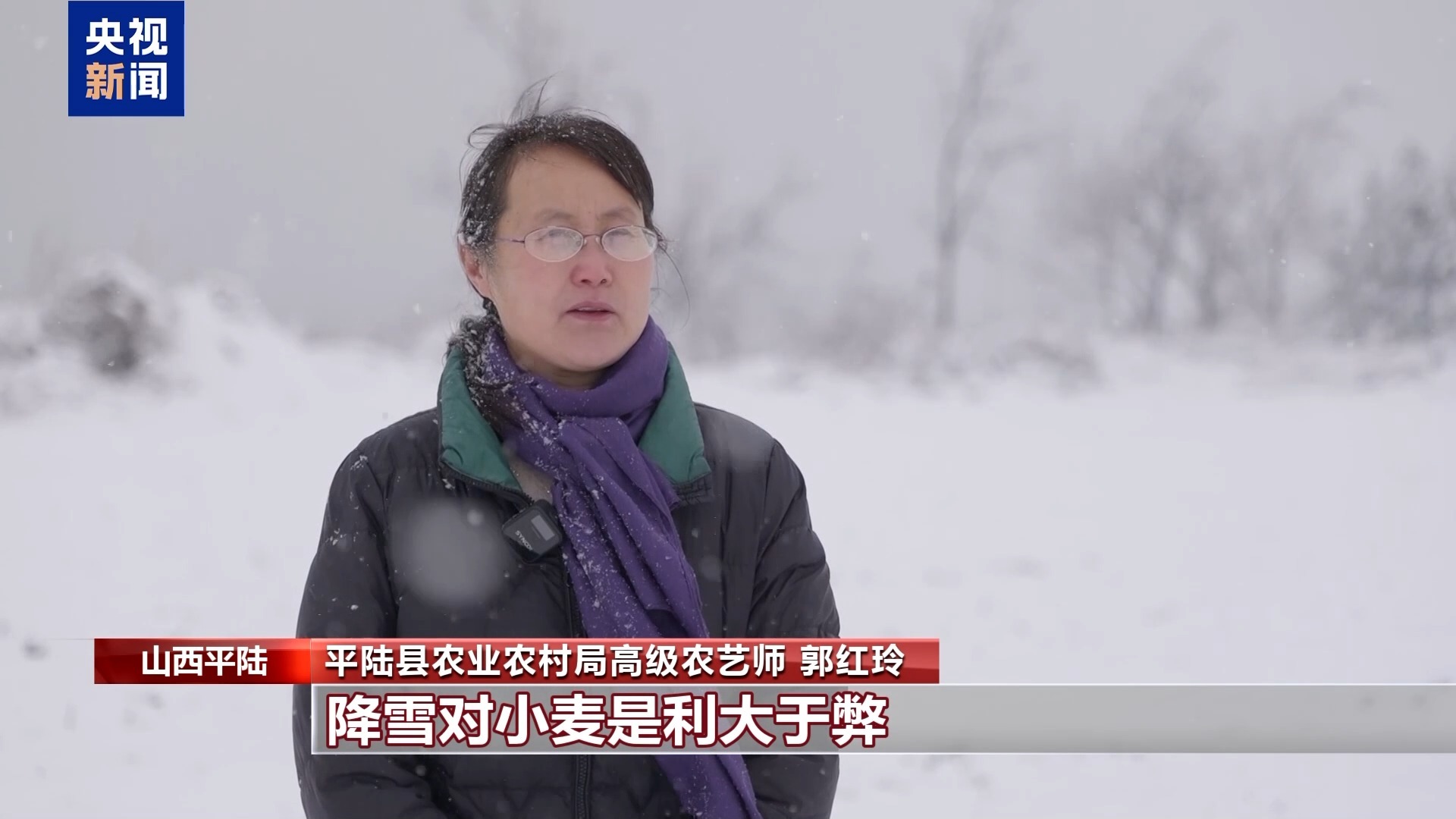 平陆县农业农村局高级农艺师 郭红玲:降雪对小麦利大于弊,将增加土壤墒情。麦农应该趁这次降雪,因田、因苗、因墒进行田间管理,趁墒追肥。