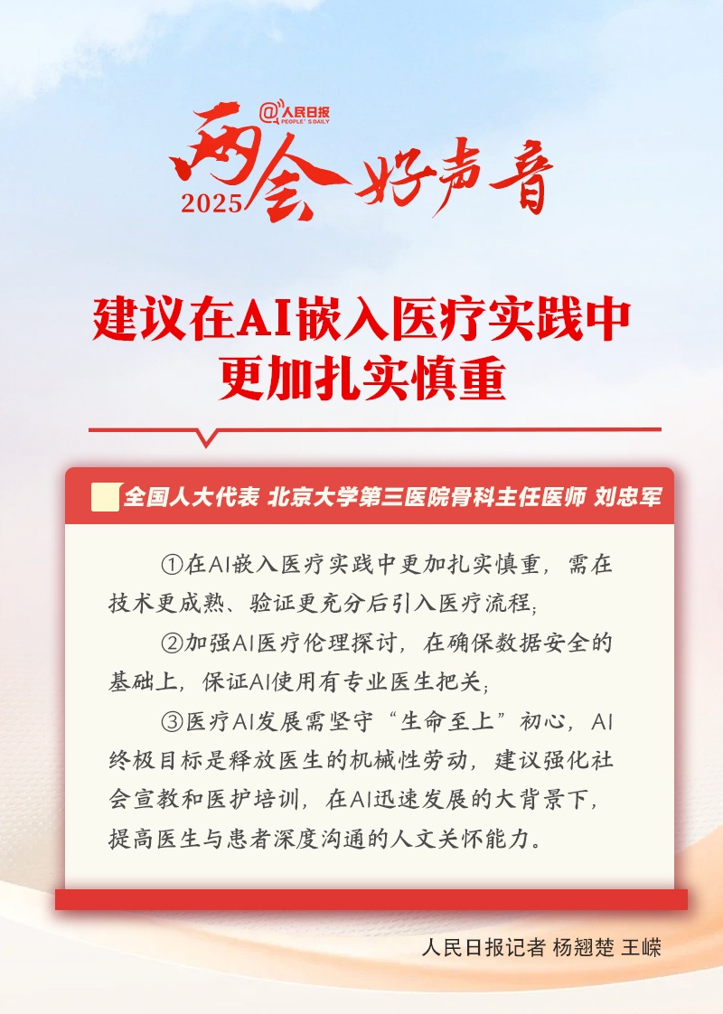 【刘忠军代表:建议在AI嵌入医疗实践中更加扎实慎重】