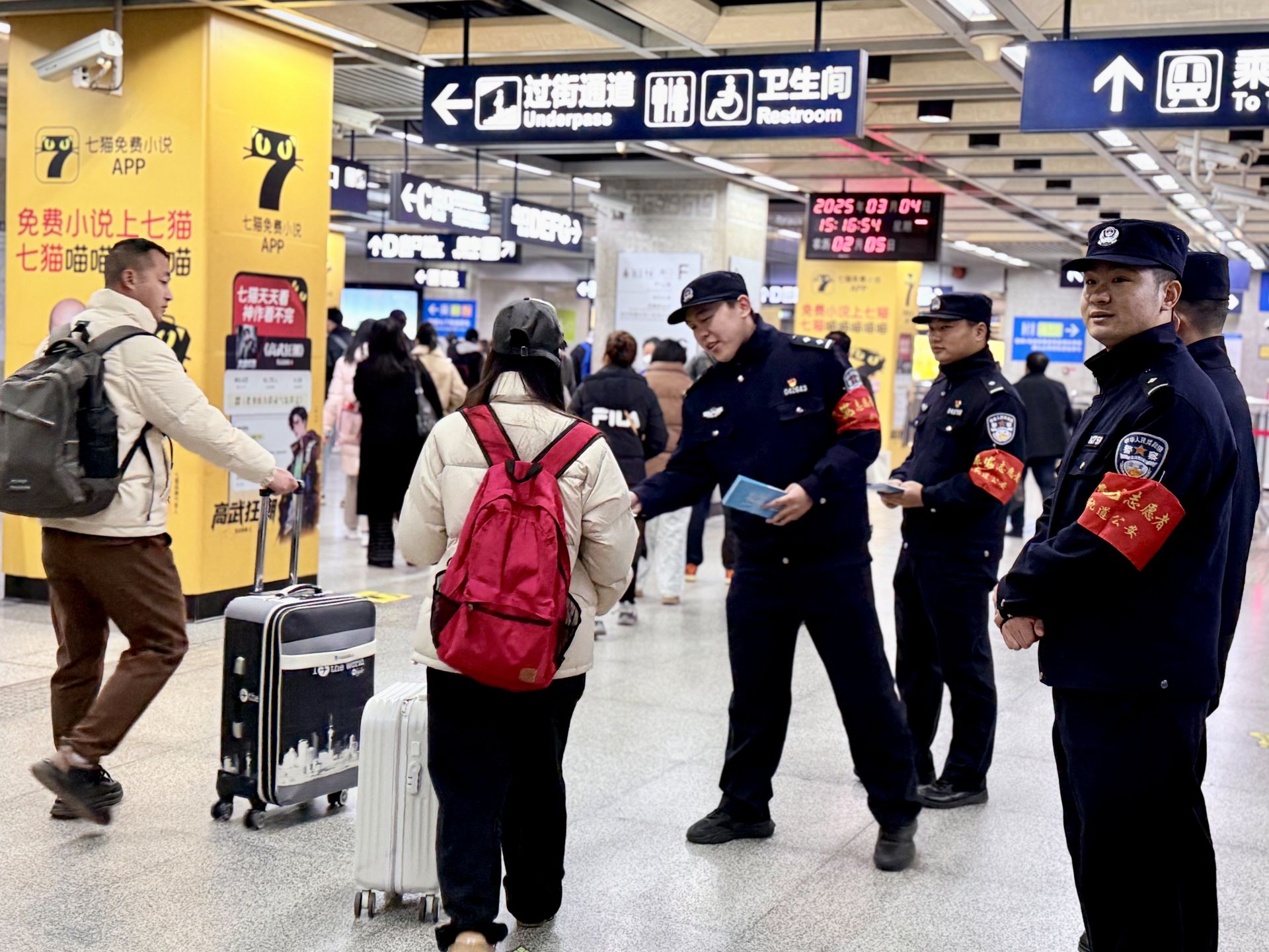 3月4日下午,一场以“护航平安出行 传承雷锋薪火”为主题的志愿服务活动在武汉地铁4号线武昌火车站举行。活动中,民警辅警通过知识问答、设立展台、发放宣传资料等方式向过往群众宣传防范电信网络诈骗和地铁违禁品相关知识,引导市民群众安全文明乘坐地铁出行,提升安全防范意识和自我保护能力。