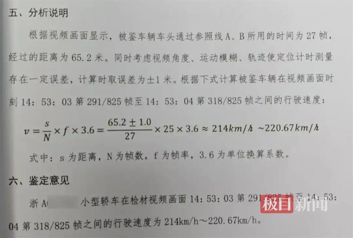 据报道,杭州公安高速交警支队一大队表示,委托的司法鉴定机构对视频进行了非常专业的测算,通过视频画面,现场测量,然后通过视频一帧一帧地测出来的,最终测出来的时速也是一个相对的区间数据。最后连被罚的驾驶员也服气地说,“太专业了”。