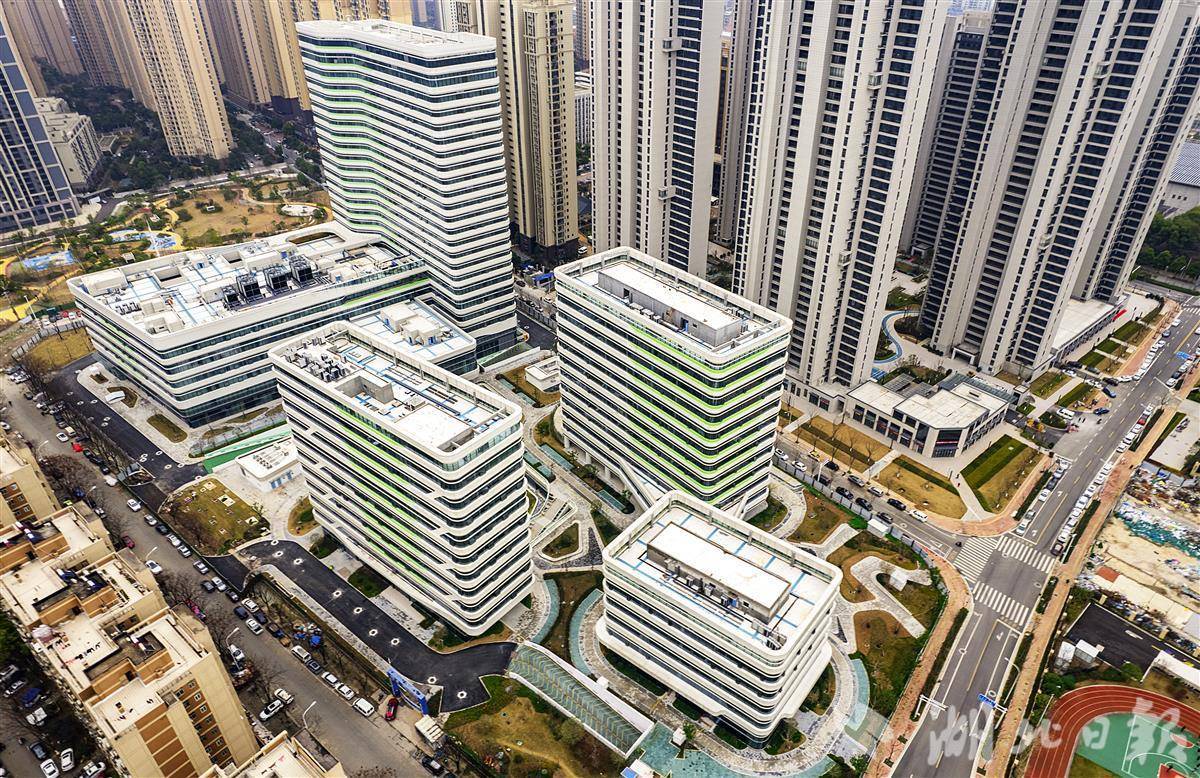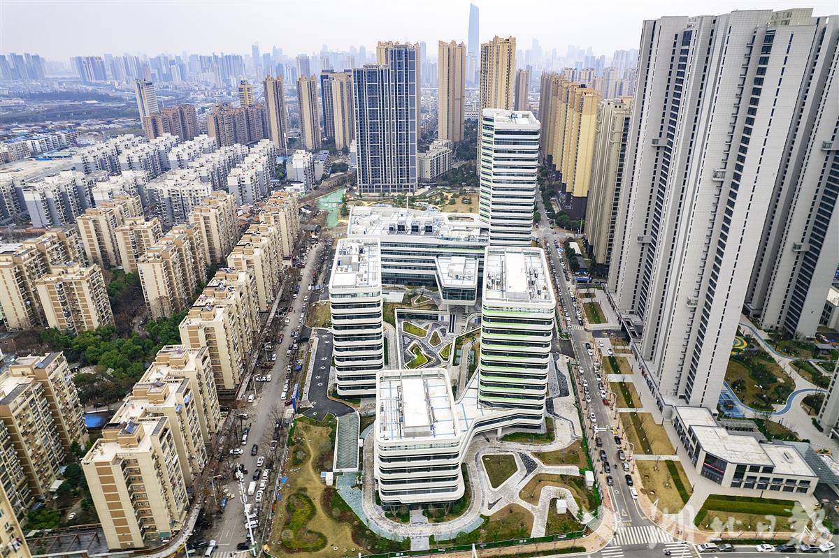 3月5日,鸟瞰武汉硚口区人民医院(武汉同济汉江湾医院)项目,目前,该院已顺利通过验收,正式进入交付使用阶段,各个科室正在紧锣密鼓装修布置。
