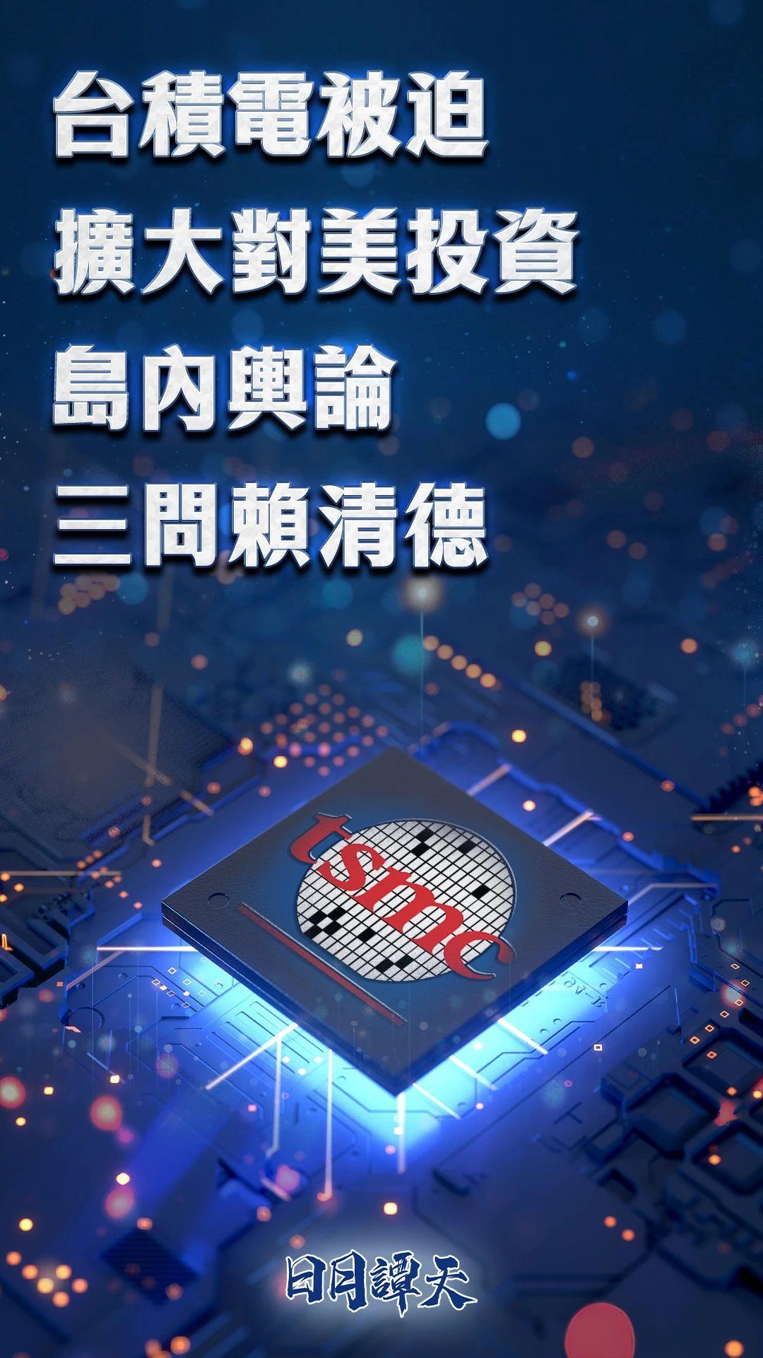 当地时间3日,台积电宣布在美国追加1000亿美元投资,计划新建5家先进芯片工厂并设立研发中心。消息传出后,台积电股价应声下跌,岛内舆论一片哗然,惊呼台积电变“美积电”,美方要榨干台湾。