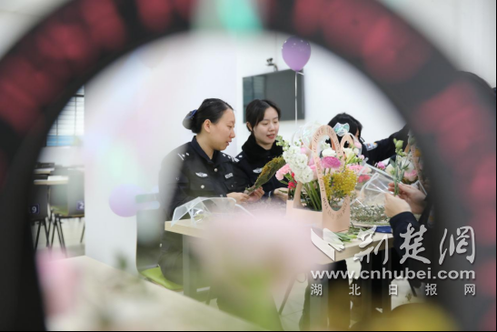 3月6日下午,襄北监狱组织女民警、女职工和警属开展“巾帼勇争先”插花课堂。