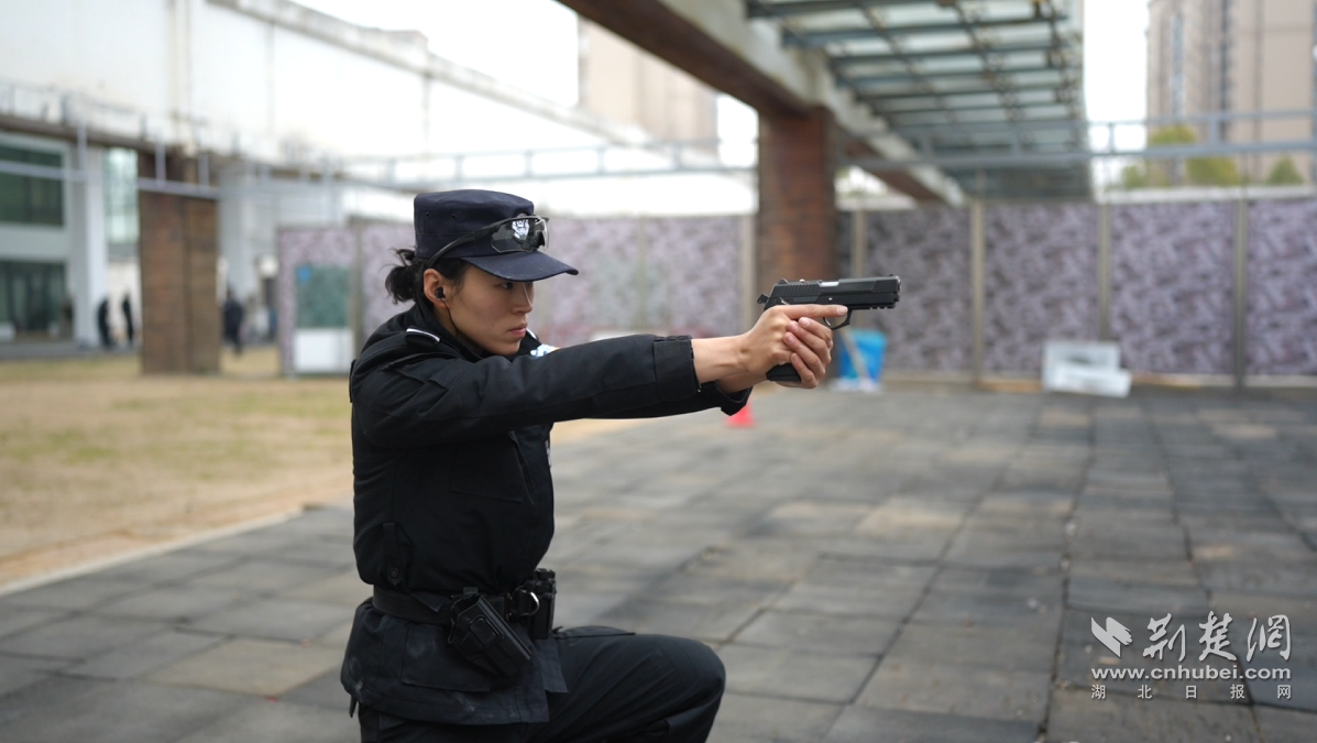 在裤子上擦干手心里的汗,从墙上蹭点灰在手心里搓一搓,3公里的热身长跑后,女队员们拿起手枪开启空枪瞄准练习。对着白墙,一瞄就是半个小时。初春的武汉,寒意未消。队员们的手被风吹得干燥发白,但头盔下的额头和鼻尖,却因为控制精准发力和呼吸节奏而冒出些许汗珠。