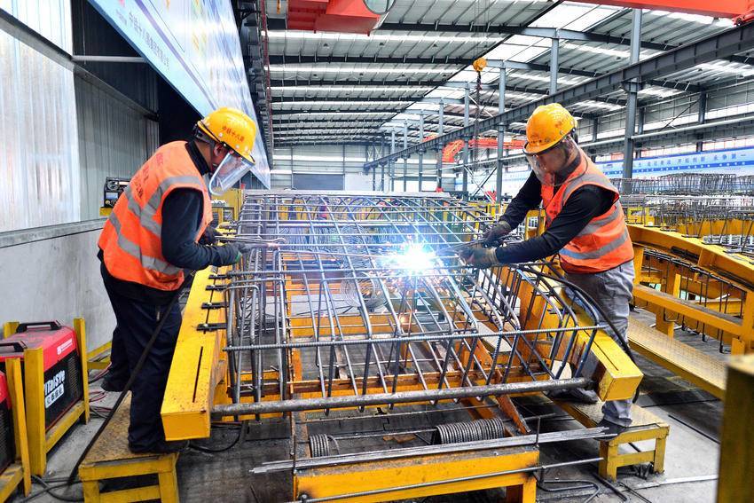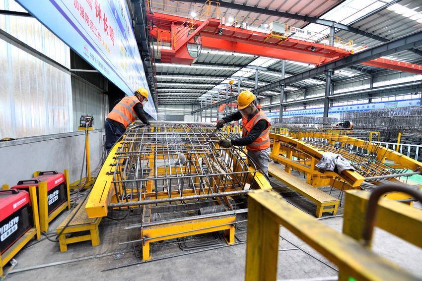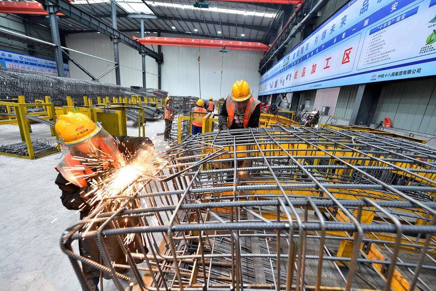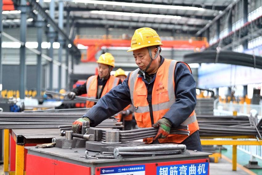 3月5日,在位于保康县马良镇的引江补汉工程土建施工及金结机电安装4标2号预制管片厂钢筋加工车间,工人在加工钢筋。