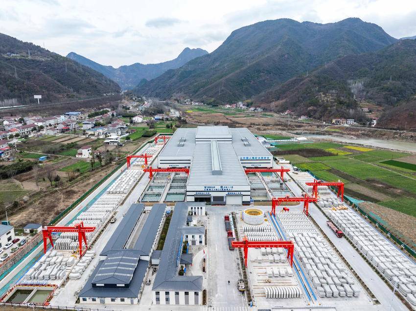3月5日,在保康县马良镇拍摄的引江补汉工程土建施工及金结机电安装4标2号预制管片厂。
