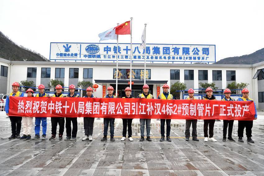 3月5日,在位于保康县马良镇的引江补汉工程土建施工及金结机电安装4标2号预制管片厂,工人们合影。
