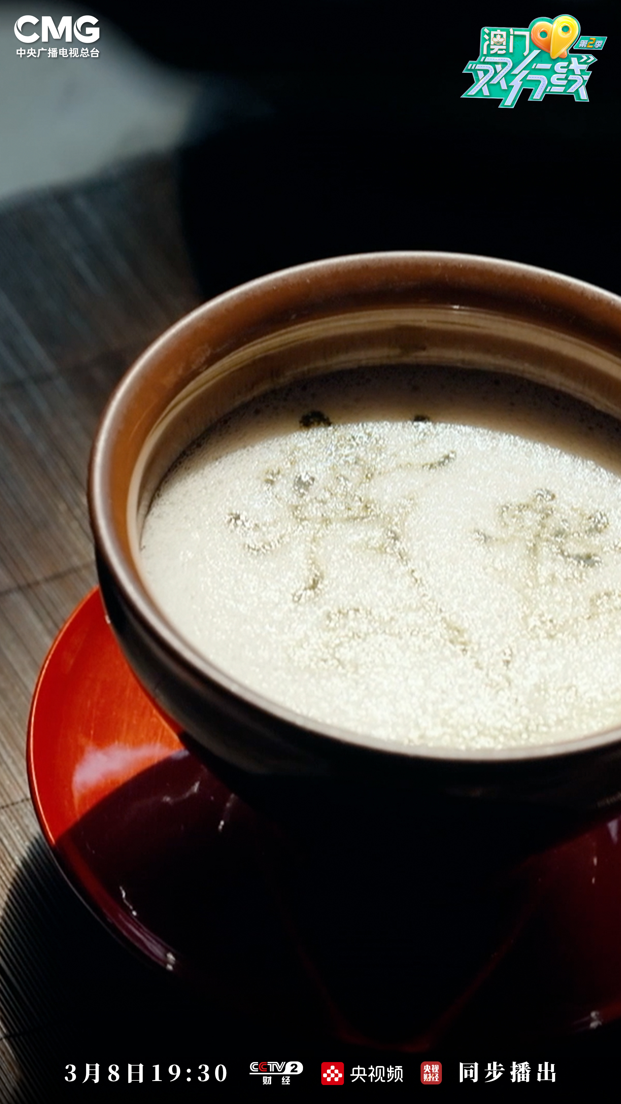 澳门是一个中西交融的城市,这里有丰富的美食文化,也汇聚了中西各式饮品。2025年3月8日,在第114个“三八”国际劳动妇女节到来之际,由中央广播电视总台与澳门特别行政区政府联合推出的大型文旅综艺节目《澳门双行线(第二季)》,将于19:30在央视财经频道,播出第十期“濠江共饮”,并在央视频、央视网、央视财经等新媒体平台同步上线。在濠江的牵引下,探索澳门的代表饮品,感受本地茶与咖啡的独特风味与交融浪漫。