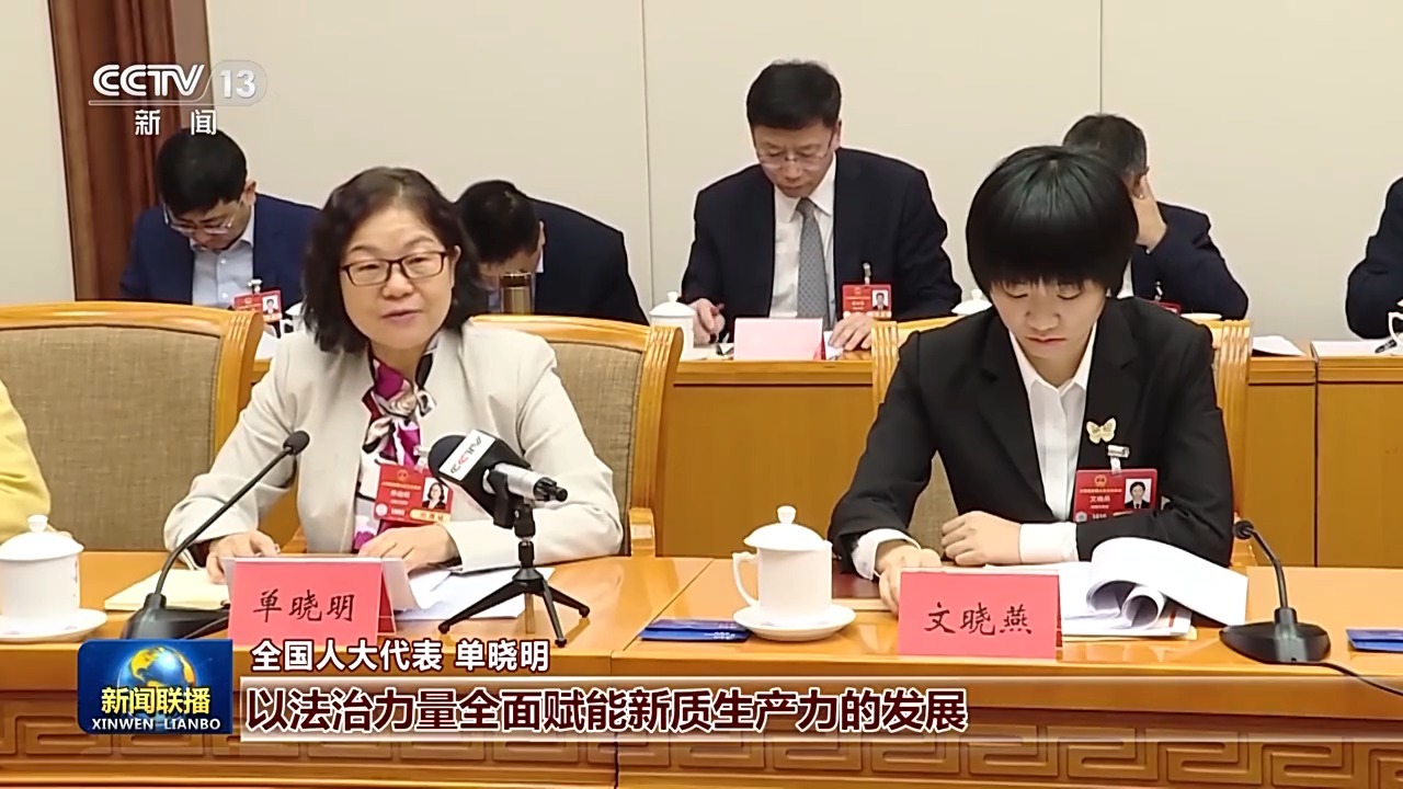 全国人大代表 单晓明:全国人大常委会工作报告,全面贯彻了习近平总书记关于发展新质生产力的重要论述,以法治力量全面赋能新质生产力的发展,充分彰显了人民代表大会制度在推动高质量发展中的显著优势。