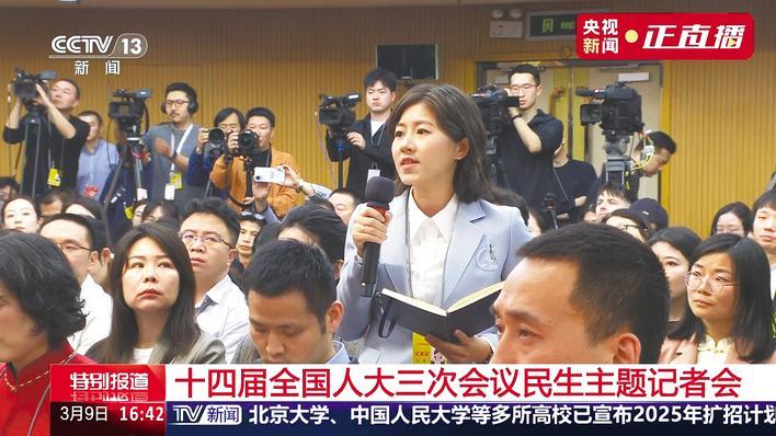 湖北日报全媒记者现场提问民政部部长陆治原。(央视视频截图)