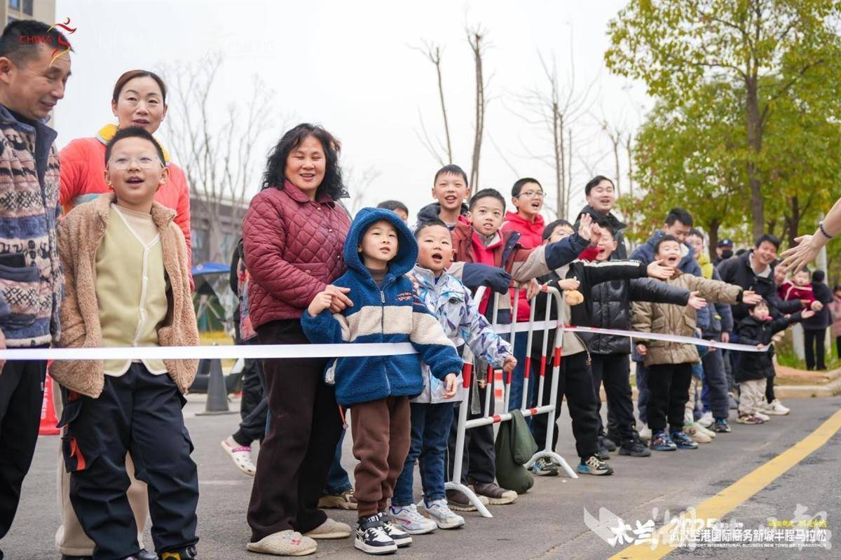 木兰·2025武汉空港国际商务新城半程马拉松赛道两旁,围满了加油的市民。