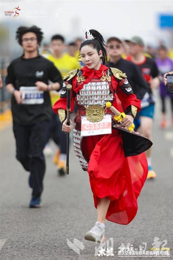 武汉农商行作为本次赛事的赞助商之一,以实际行动响应各级政府支持全民健身倡导健康生活的号召。黄陂支行副行长吴中奇参与到健康跑中,与广大跑友主动交流,并表示:“未来,我们将在武汉空港新城基础设施建设、科创绿色产业发展,空港综合配套产业建设等领域持续深入合作,以武农商的金融力量助力空港新城持续稳定高质量发展。”活动现场,木兰文化的创新表达成为点睛之笔。在串联起空港新城各个现代地标的赛道上,赛事特邀博主“小太杨”身着改良版木兰戎装,英姿飒爽地跑过这21.0975公里,形成“巾帼精神对话临空速度”的震撼画面。