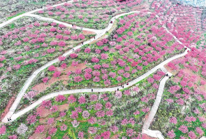 3月7日,花园堡梅花盛开,曾经的荒山变为生态公园。 (湖北日报全媒记者 鲁腾 通讯员 陈绪开 摄)