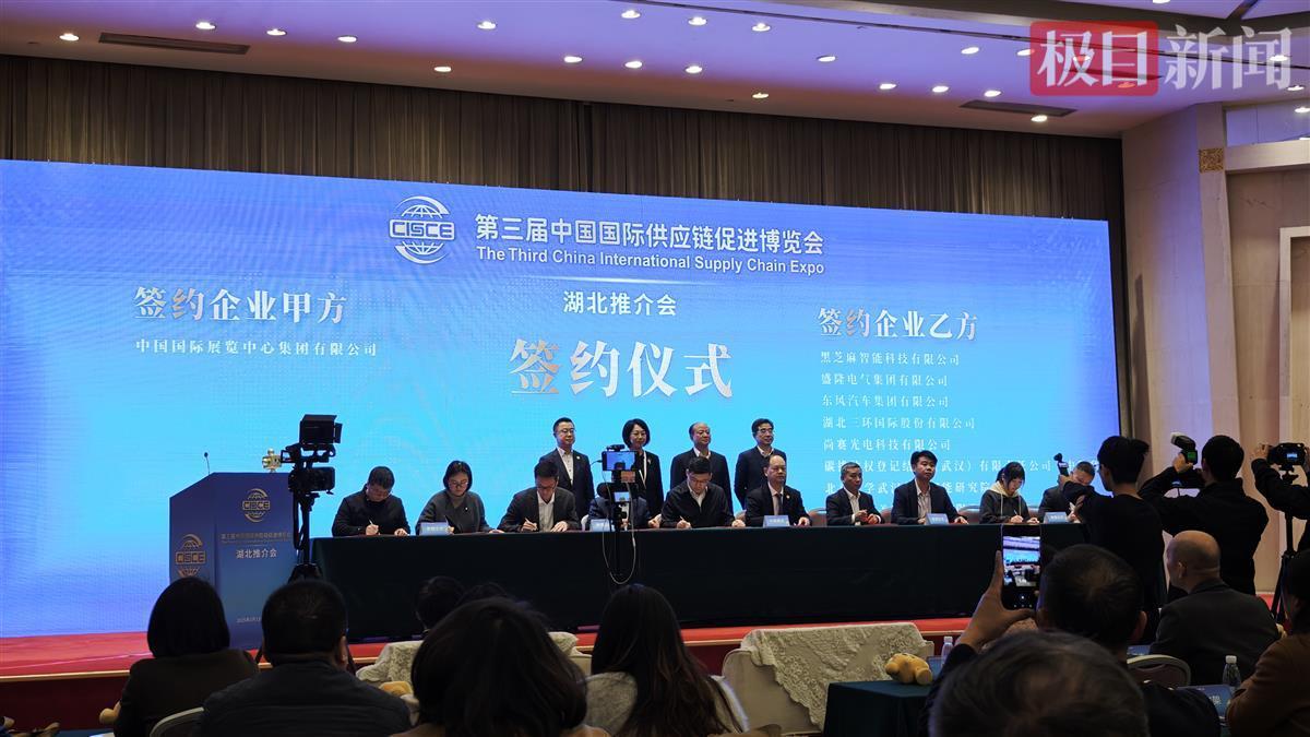 3月13日上午,第三届中国国际供应链促进博览会(以下简称“链博会”)湖北推介会暨签约仪式在汉举办。这是今年来,中国贸促会在地方举办的首场推介会暨签约仪式,首批17家湖北企业与中展集团签署第三届链博会意向参展协议。