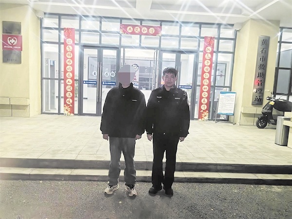 接到求助后,团城山派出所民警肖志康和黄春生立即赶到团城山街道广州路。昏黄的路灯下,只见一名青年男子靠在路边的电杆旁满脸愁容,他用冻得发红的双手反复揉搓着衣角。