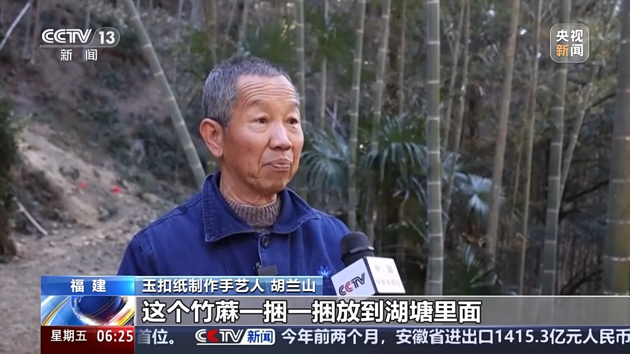 厦门大学历史与文化遗产学院副教授 陈瑶:玉扣纸制作的原料非常单纯。就是三种,一个是竹子嫩竹,第二个是石灰,第三个就是清洁的山泉水。基本上是纯靠人工来进行品质的管控。