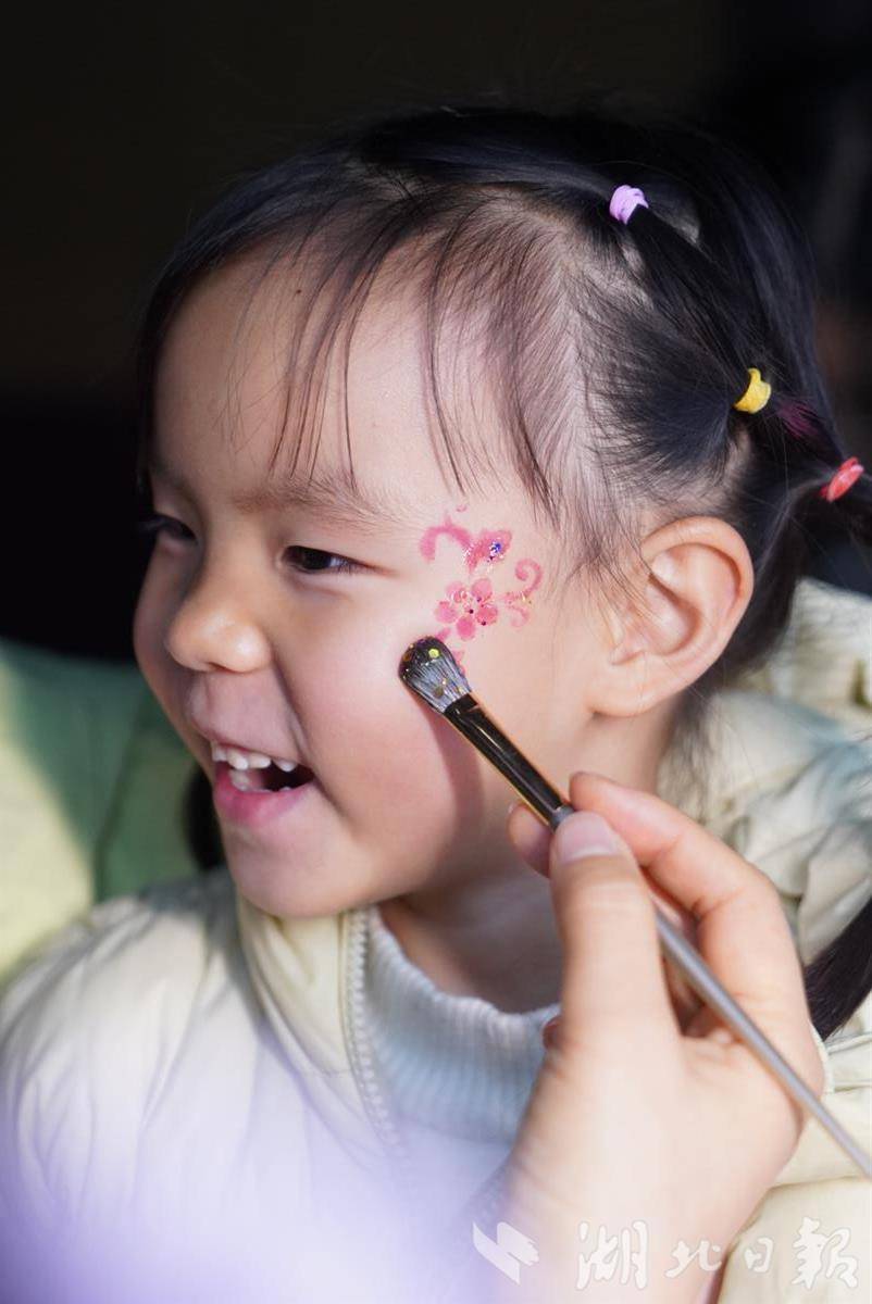在“夜樱妆梦”互动区,聚集了不少汉服爱好者与小朋友前来点妆体验。大家化身“樱花仙子”“小哪吒”,沉浸式感受传统文化的魅力。“我们今天特地穿汉服过来,梦幻的樱花妆配上园内古风建筑,一步一个风景。”身着汉服的大学生小孟与朋友拍照时笑道。