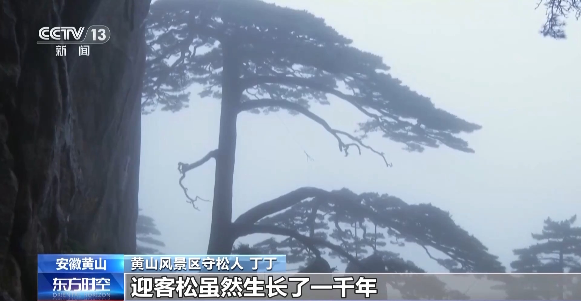 黄山风景区守松人 丁丁:迎客松虽然生长了一千年,但是它跟同龄其他的古树相比,它并不算高大。但对我们守松人来说,它的任何一个细节,任何一个生长的微末,我们都需要记录在案的。