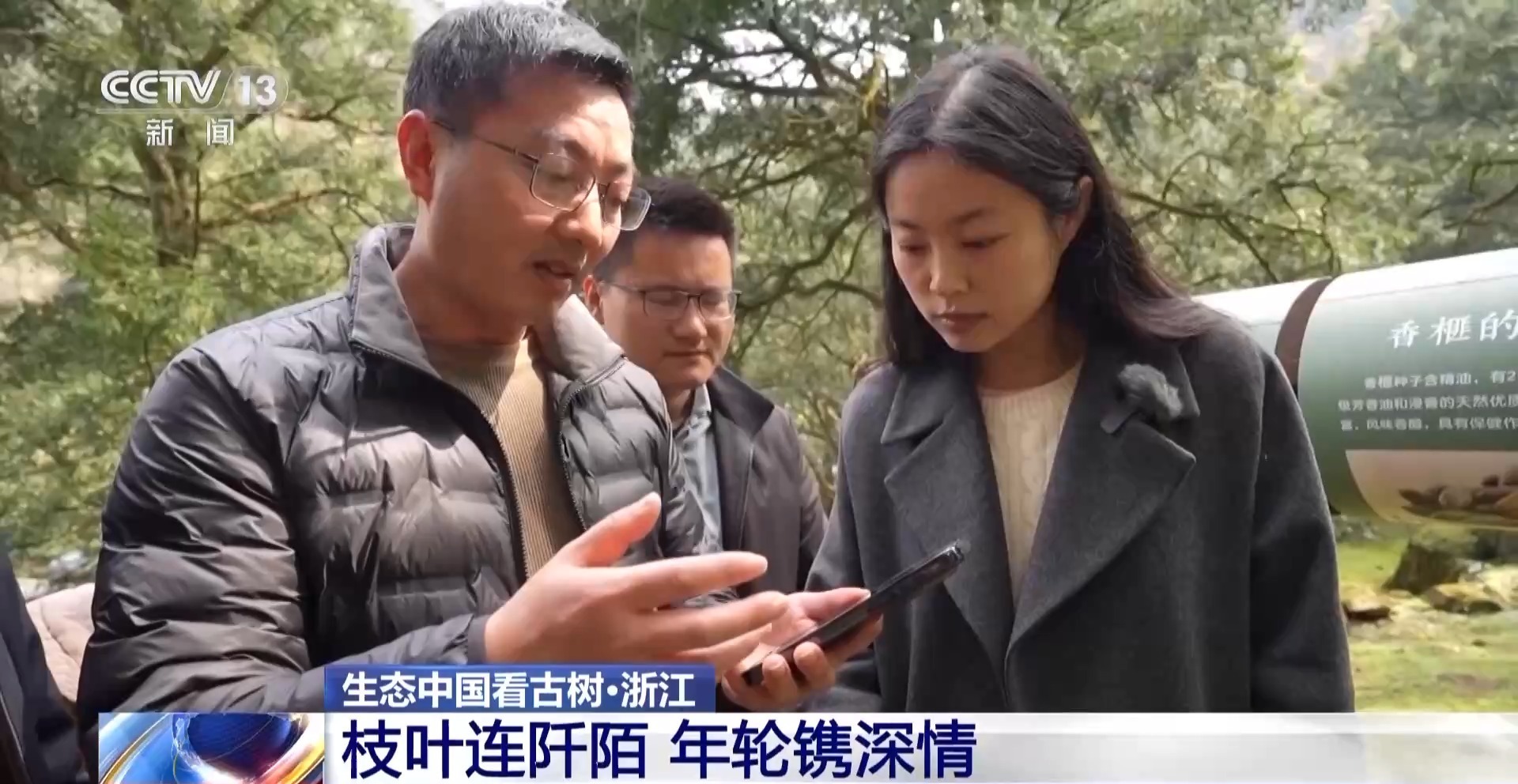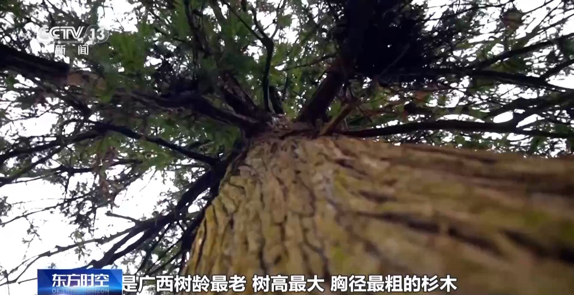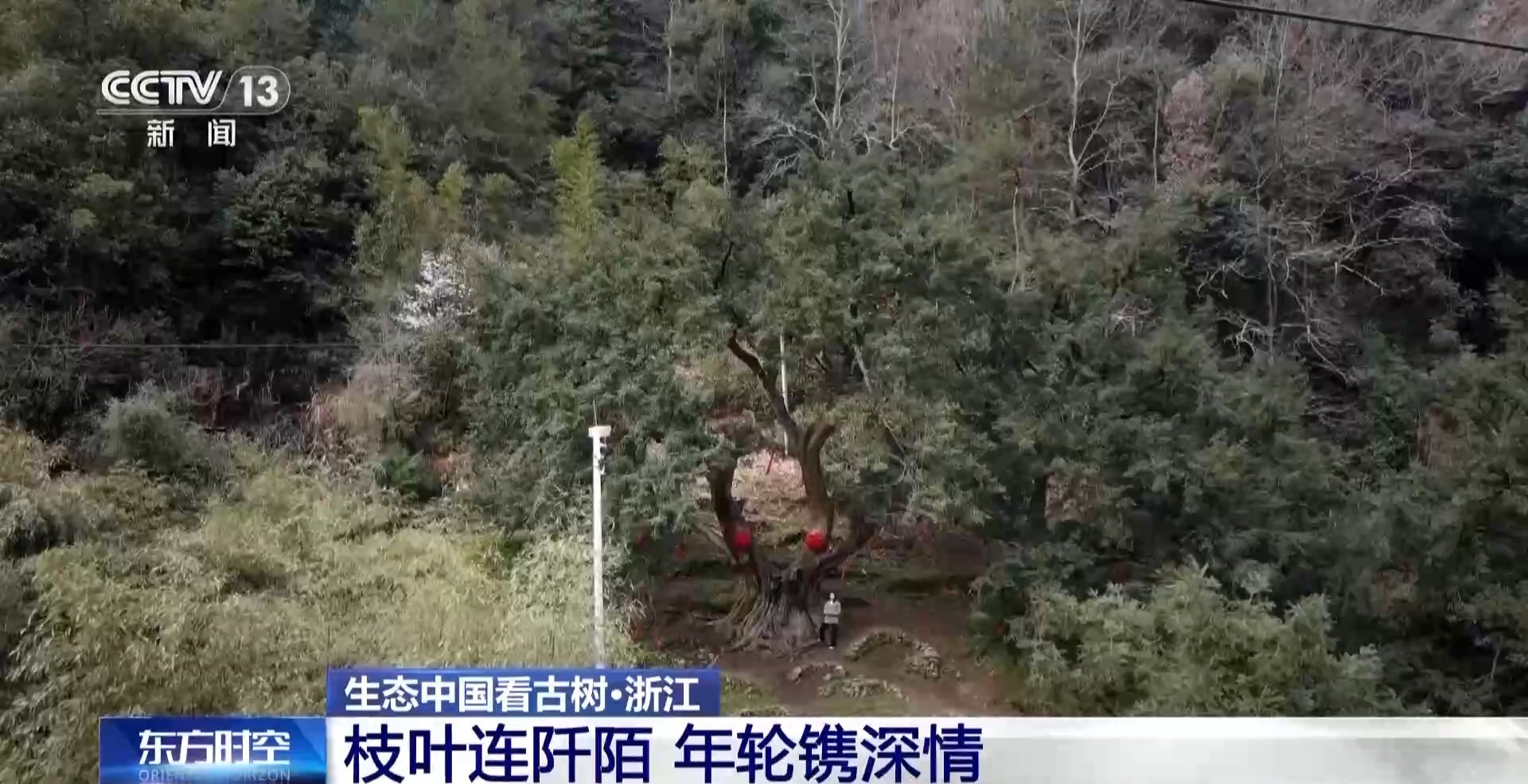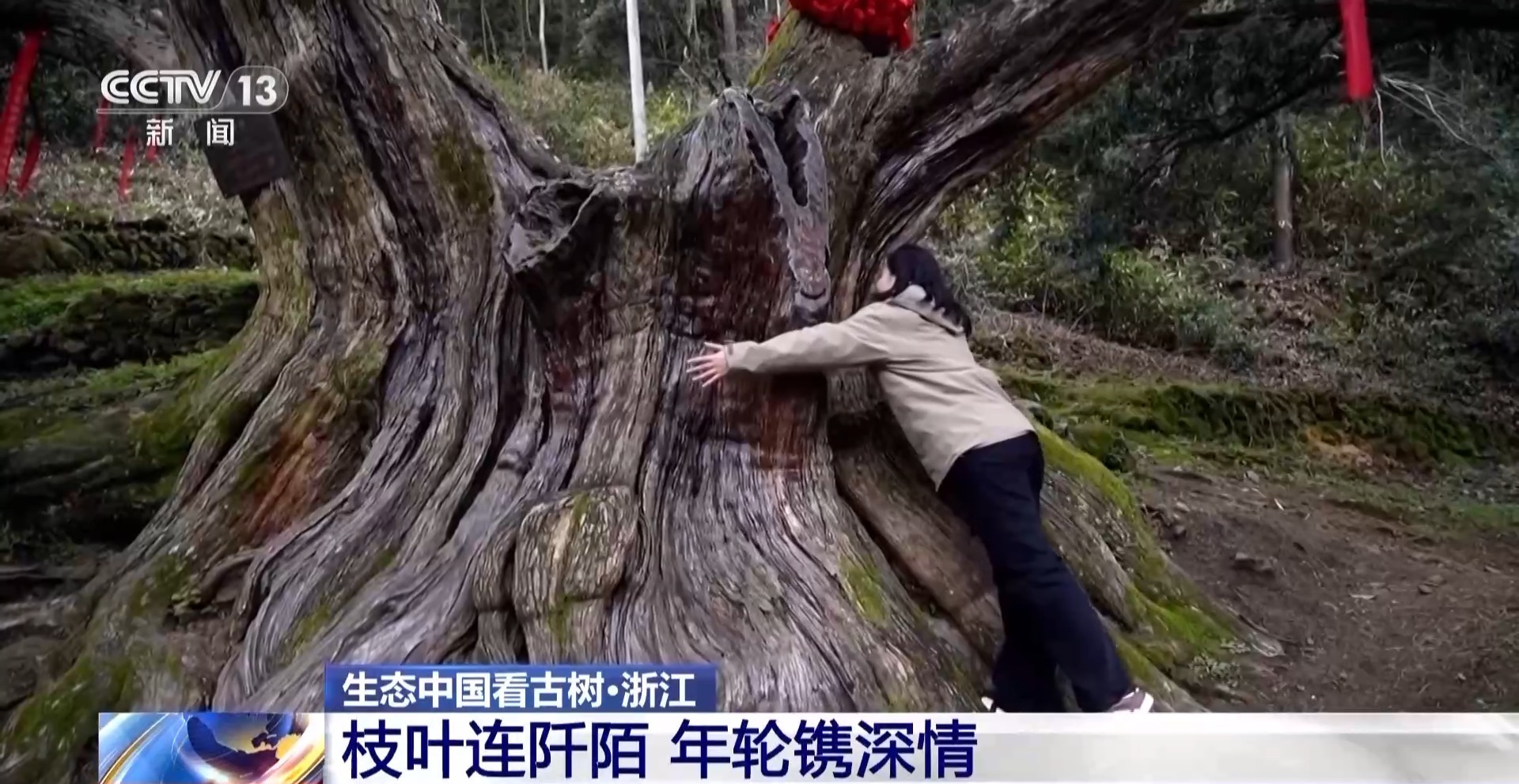 总台记者 濮佳怡:“中国香榧王”,这棵树的主干,大概需要5到6个成年人才能够将它完全地抱住。