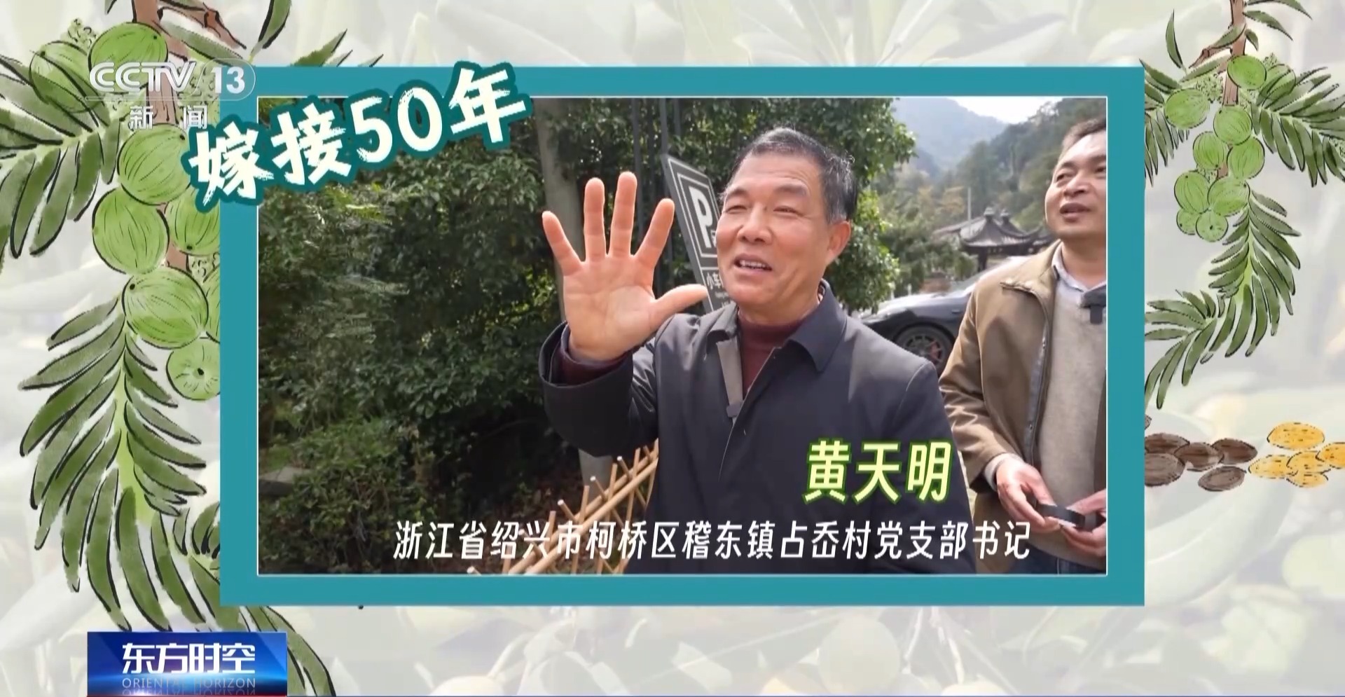教村民嫁接技术的黄天明是占岙村党支部书记。作为村里守护古香榧的第六代,2024年11月,他向世界分享了家乡对古树名木保护和发展的创新实践。