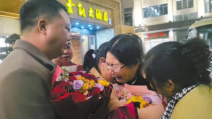 3月14日晚,经过10个多小时车程,行程900余公里,陈明带着母亲王金花抵达竹溪。早已等候在此的马丽丽和马翠翠见到下车的母亲和弟弟,喜极而泣,四人紧紧相拥。