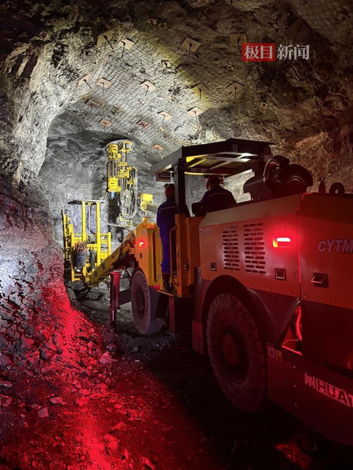 在540米分层南巷,极目新闻记者现场看到,智能凿岩台车正挥臂钻孔。“过去打孔直面飞石风险,现在动动手指就行。”技术员李峰轻点控制台,远程完成高危作业,安全更有保障。
