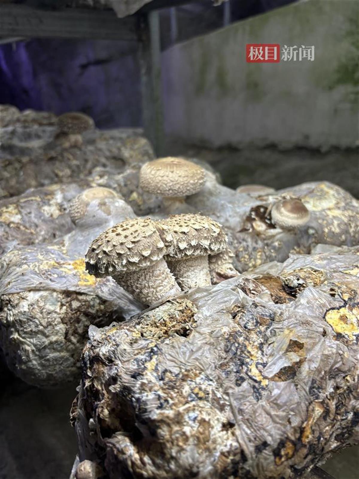 废弃矿洞内的香菇喜获丰收