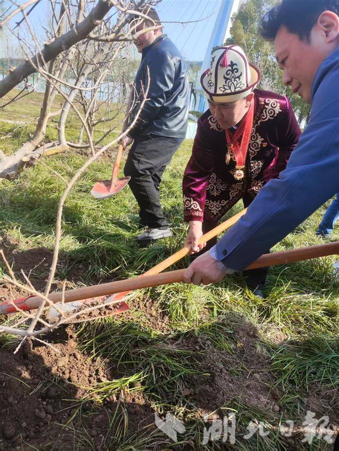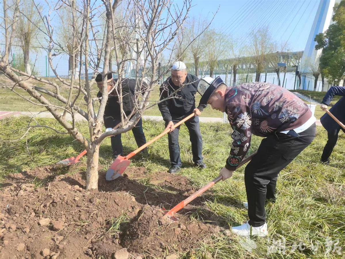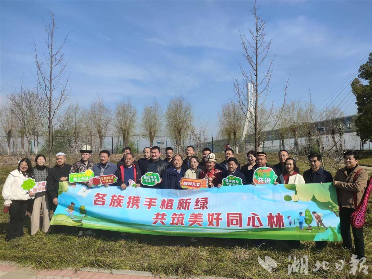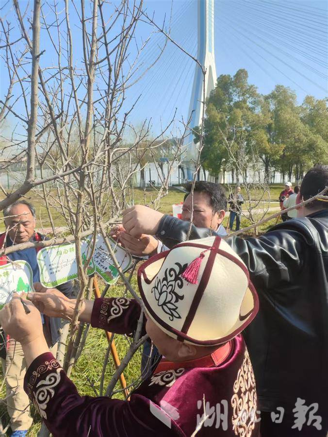 培土、浇水,阿布都加帕尔·猛德和玉苏普江·艾比布拉,与武汉各民族的群众代表在青山江滩共同种下56棵石榴树,并将这片树林取名为“同心林”。“中华民族一家亲,同心共筑中国梦!”“祖国的明天会像花一样美!”大家纷纷为自己种下的石榴树挂牌,并写上寄语。