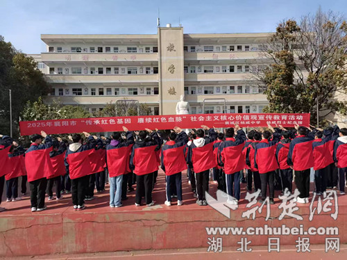 荆楚网(湖北日报网)讯(通讯员欧阳红 赵大清)为传承红色基因,弘扬革命精神,3月18日,襄城区杨威中学充分发挥红色教育基地的优势,积极开展了以 “传承红色基因,赓续红色血脉” 为主题的社会主义核心价值观宣传教育活动,在全校范围内营造了浓厚的红色文化氛围。