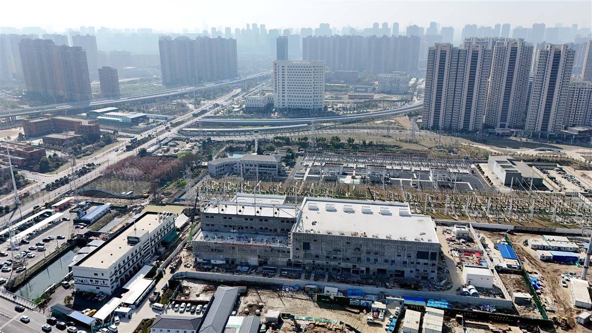 据悉,这是湖北史上首个超高压变电站进入城市腹地。过去,城市中的变电站电压等级多为220千伏。随着武汉市用电需求不断增多,需要更高等级的变电站来“进城送电”。2023年10月,江北变电站开工建设。