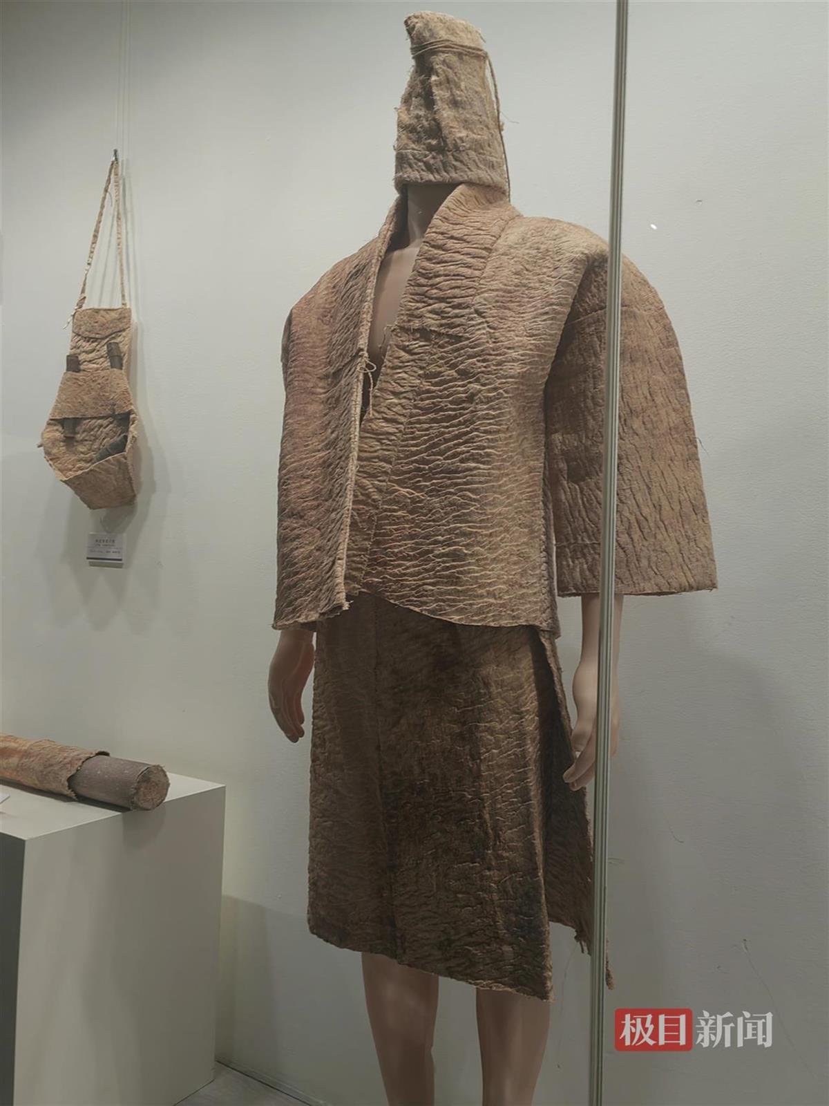 3月19日,“五彩霓裳·民族瑰宝——海南黎族传统织锦服饰精品展”在武汉博物馆举行媒体导览活动,极目新闻记者看到,展厅里出现了“树皮衣”。