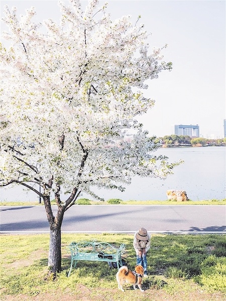 樱花水岸恍如油画