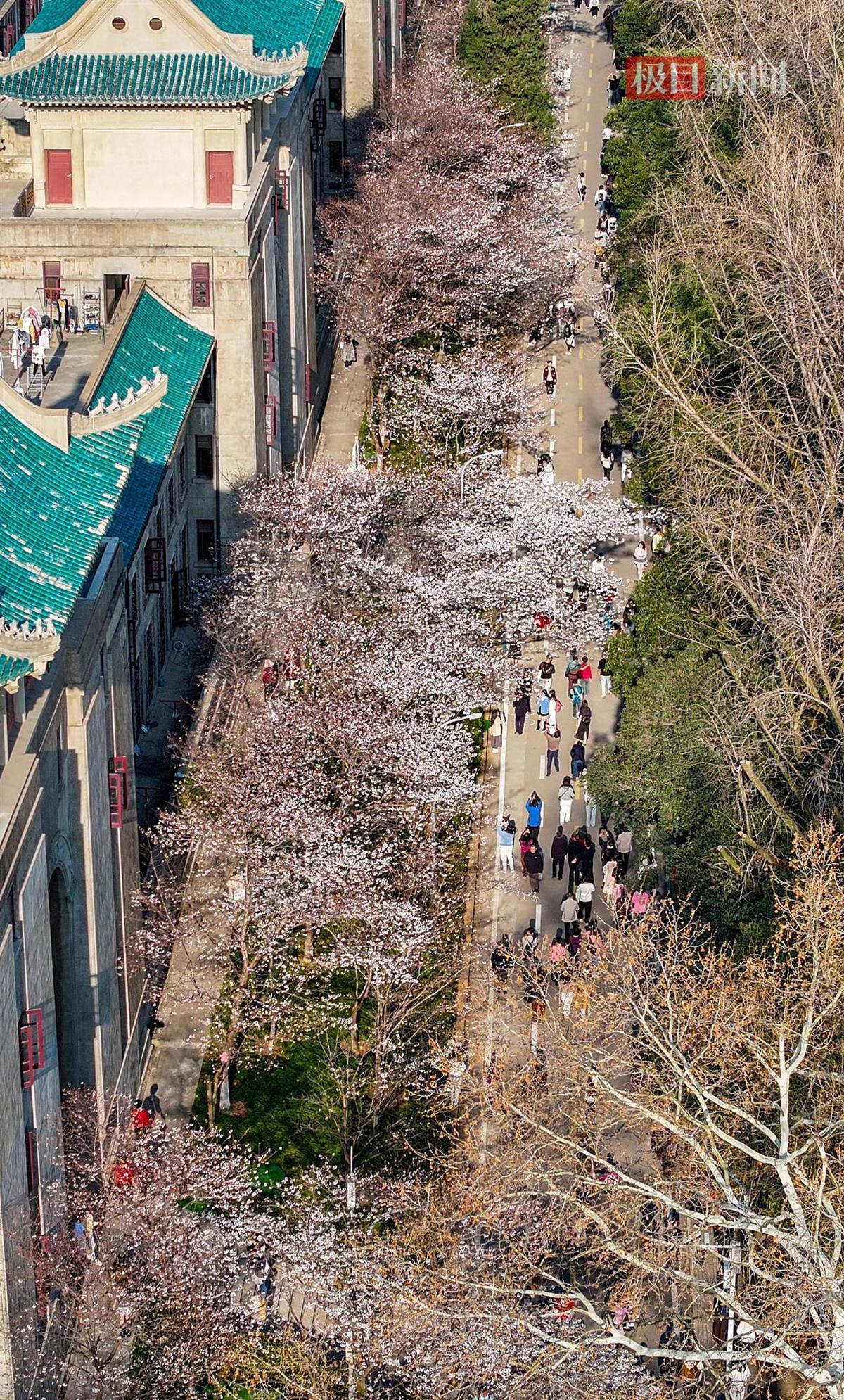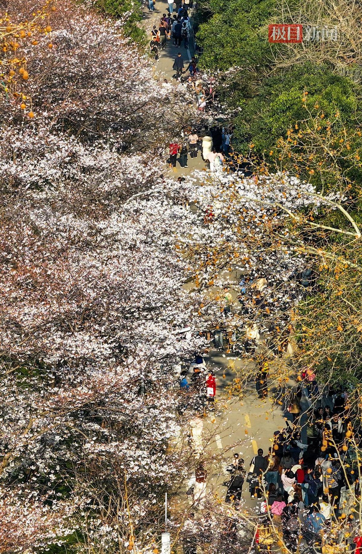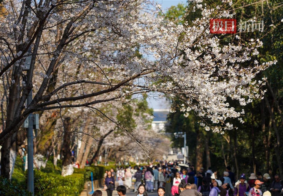 3月20日,武汉大学的樱花正式进入最佳观赏期。樱花树成排而立,枝头缀满花朵,宛如云霞般绚烂。微风拂过,花瓣纷纷扬扬地飘落,仿佛一场温柔的樱花雨,空气中弥漫着淡淡的花香,沁人心脾,吸引了众多游客前来打卡。