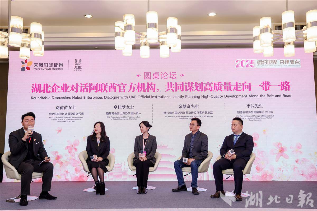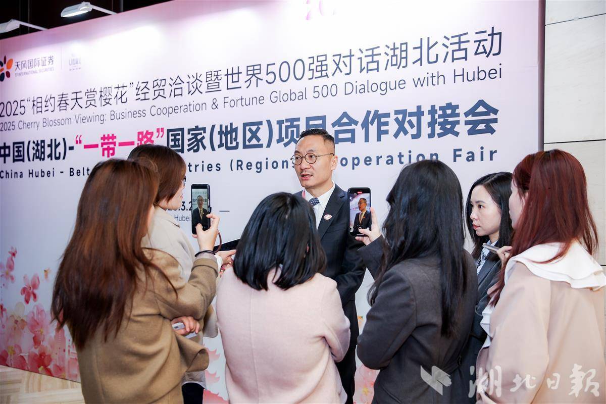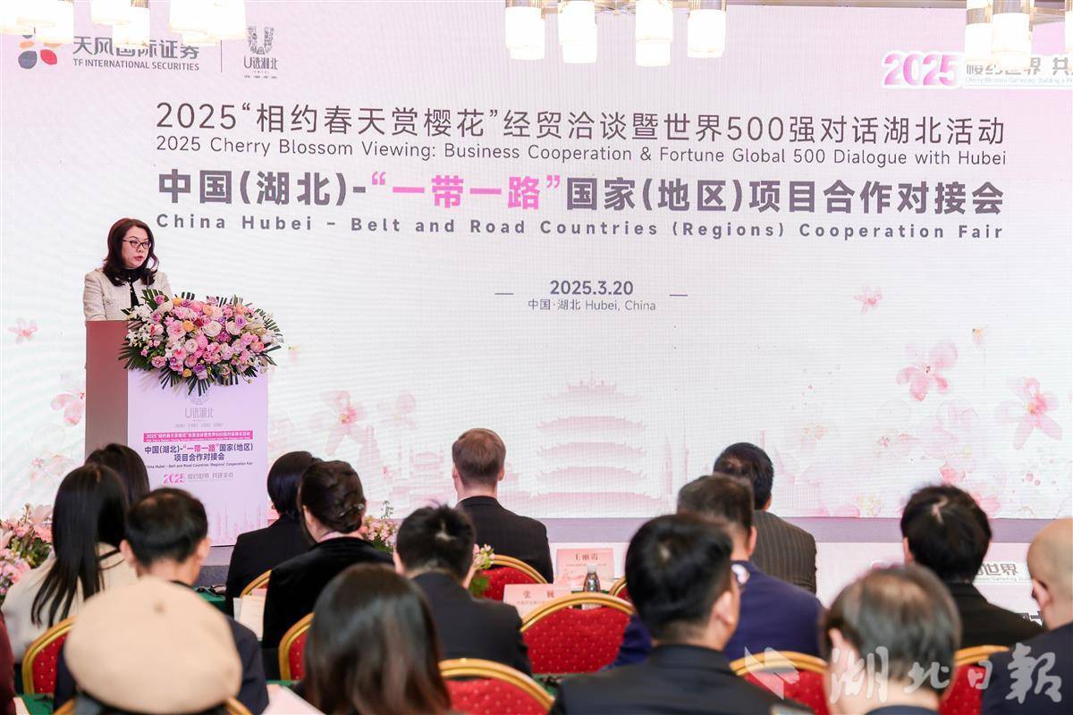 本场会议是由湖北省人民政府主办的2025“相约春天赏樱花”经贸洽谈暨世界500强对话湖北活动的重点主题论坛之一。合作对接会上,来自沙特、哈萨克斯坦、阿联酋、泰国、土耳其等“一带一路”国家(地区)、西班牙等欧洲国家的超过10家政府机构、经济组织、知名跨国企业、金融机构、商会代表,以及武汉烽火国际、明德生物等近30家湖北省企业代表,就“一带一路”国家(地区)宏观经济情况和资本投资偏好、湖北企业产业出海的建议等进行深入交流。