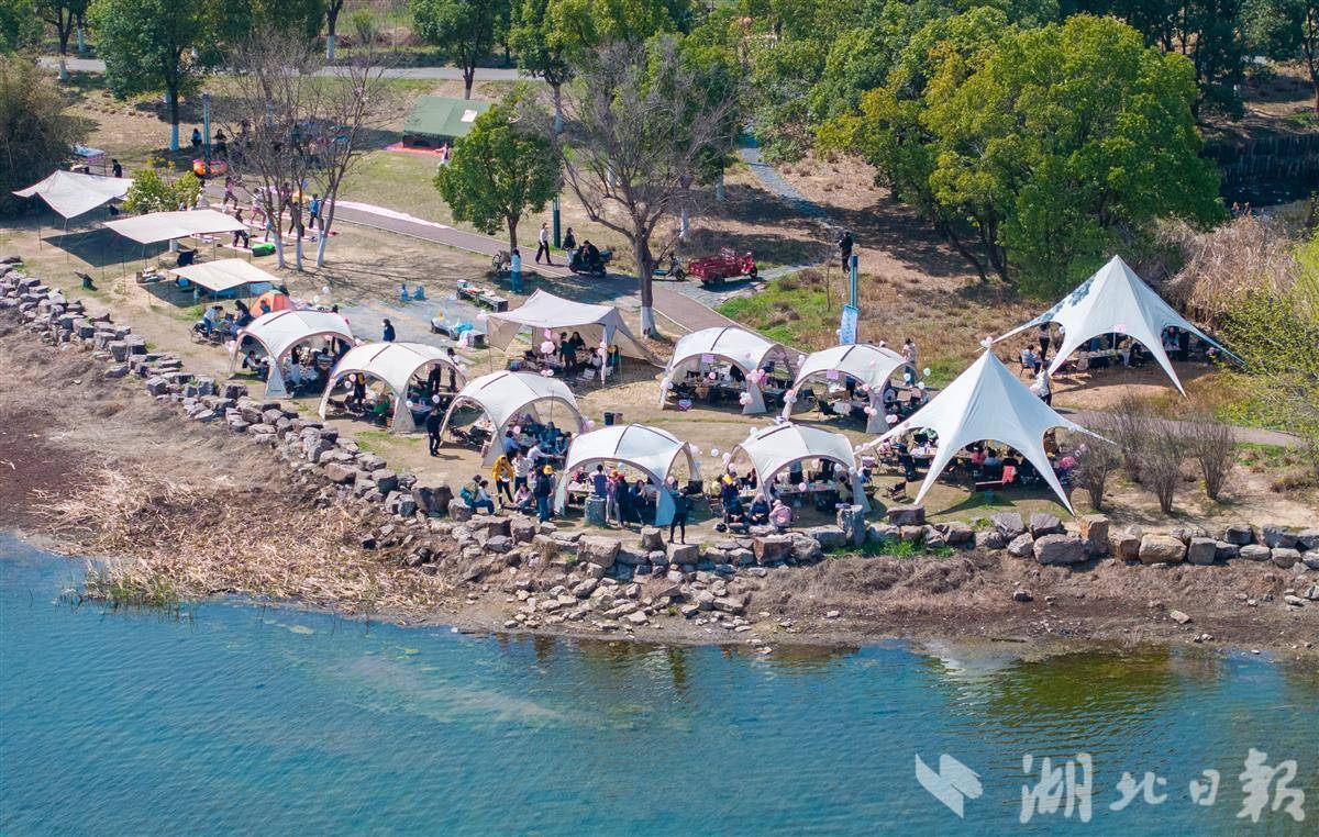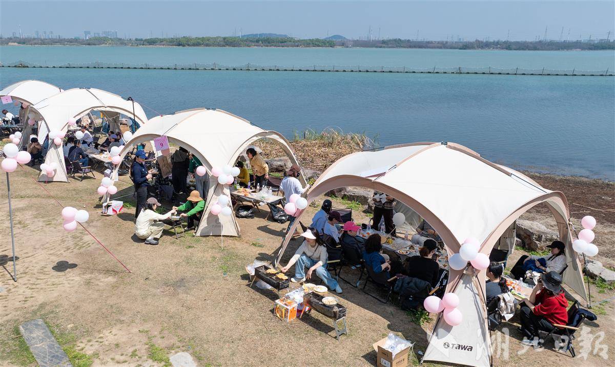 3月20日,游客在东湖马鞍山森林公园露营基地游玩。
